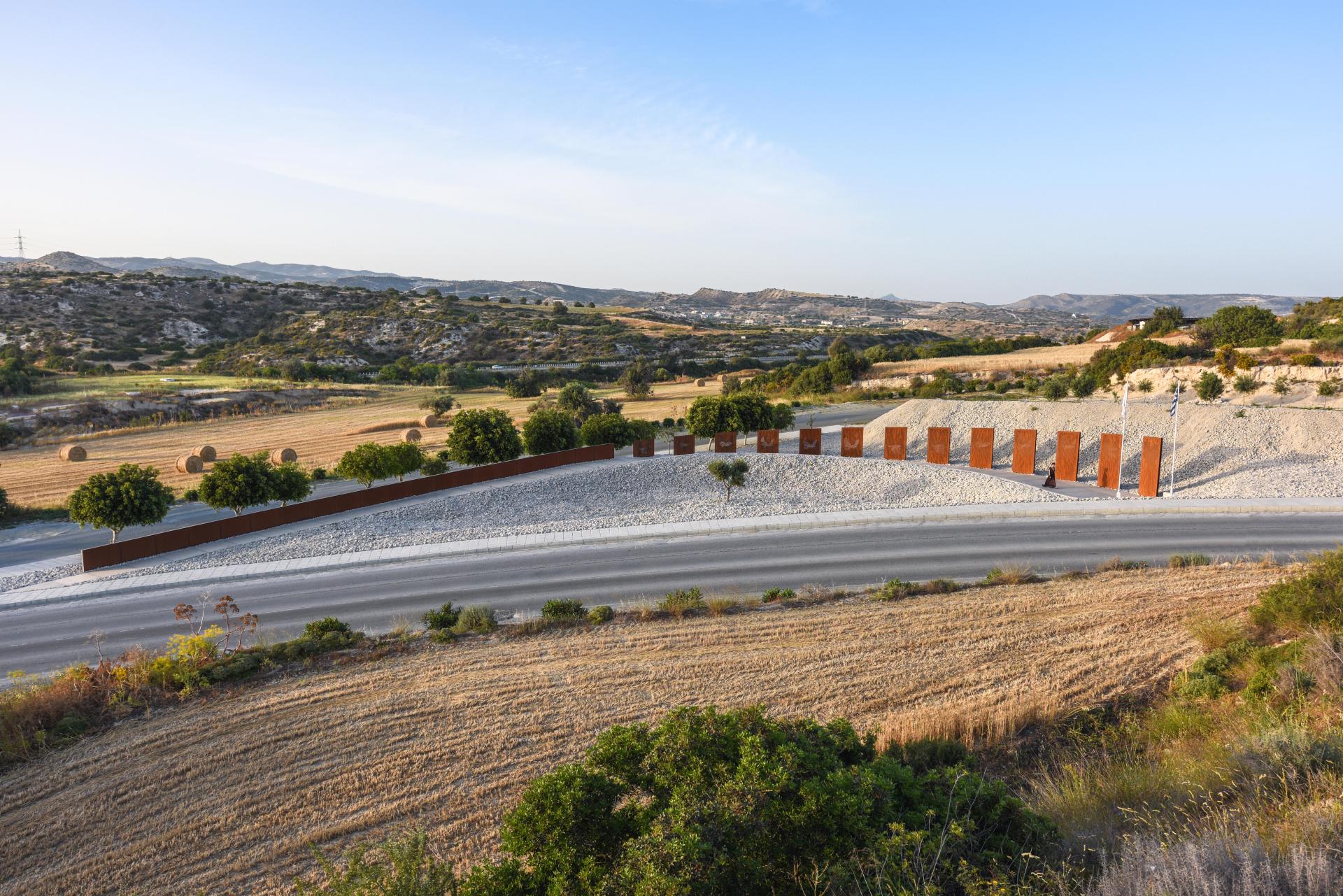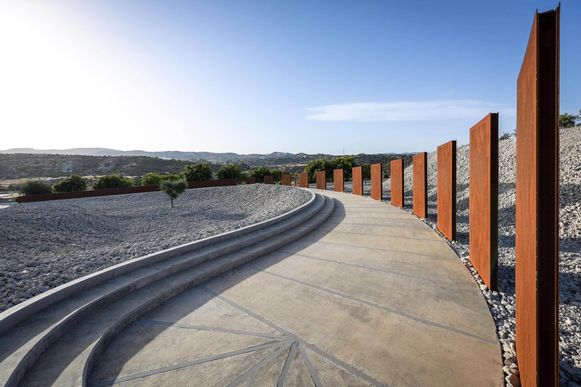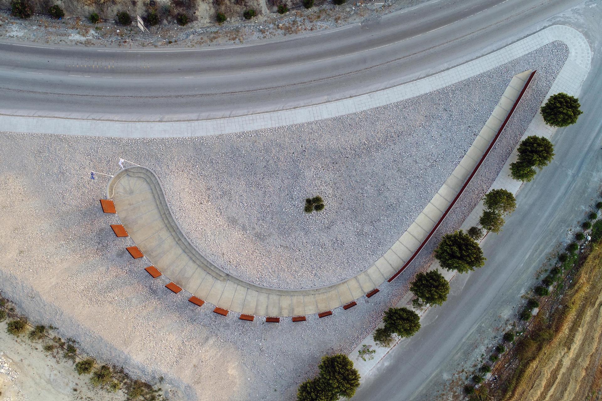 The memorial park is commemorating the 13 fallen during an accidental explosion at Evangelos Florakis Naval Base on July 11th, 2011, at Mari, Laranca, Cyprus. The project is located at the northwest entrance of the Mari community and was a private commission by the local council.