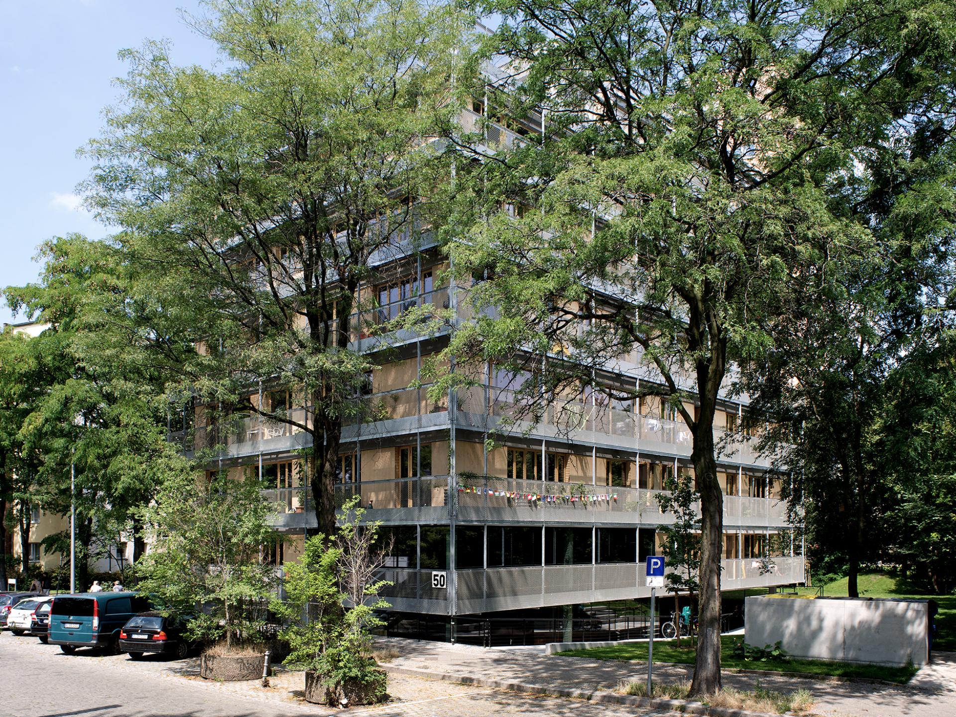 R50 – cohousing is a new model typology for low-cost and affordable housing offering a maximum capacity for adaptation and flexibility throughout its lifetime. Social, cultural, economic and ecological aspects have been considered equally to define a contemporary sustainable approach to urban living. The building´s construction is based on a load-bearing ferroconcrete skeleton structure, which allowed a free arrangement of the prefabricated wooden walls and façade modules. Adaptations according to changing needs such as apartment sizes and layouts as well as shared spaces are possible without influencing the main building structure. As a renewable, regional and pollutant-free raw material with excellent thermal insulation properties, the use of timber has a positive effect on the eco-balance of the building. It reduces the embodied energy of the building and enables an environmentally compatible deconstruction. The thermal insulation properties of the façade modules have been optimized and the limit set by German Energy Saving Regulations at that time was reduced by 30%. The extensively greened roof protects against overheating and has a positive effect on the microclimate.
