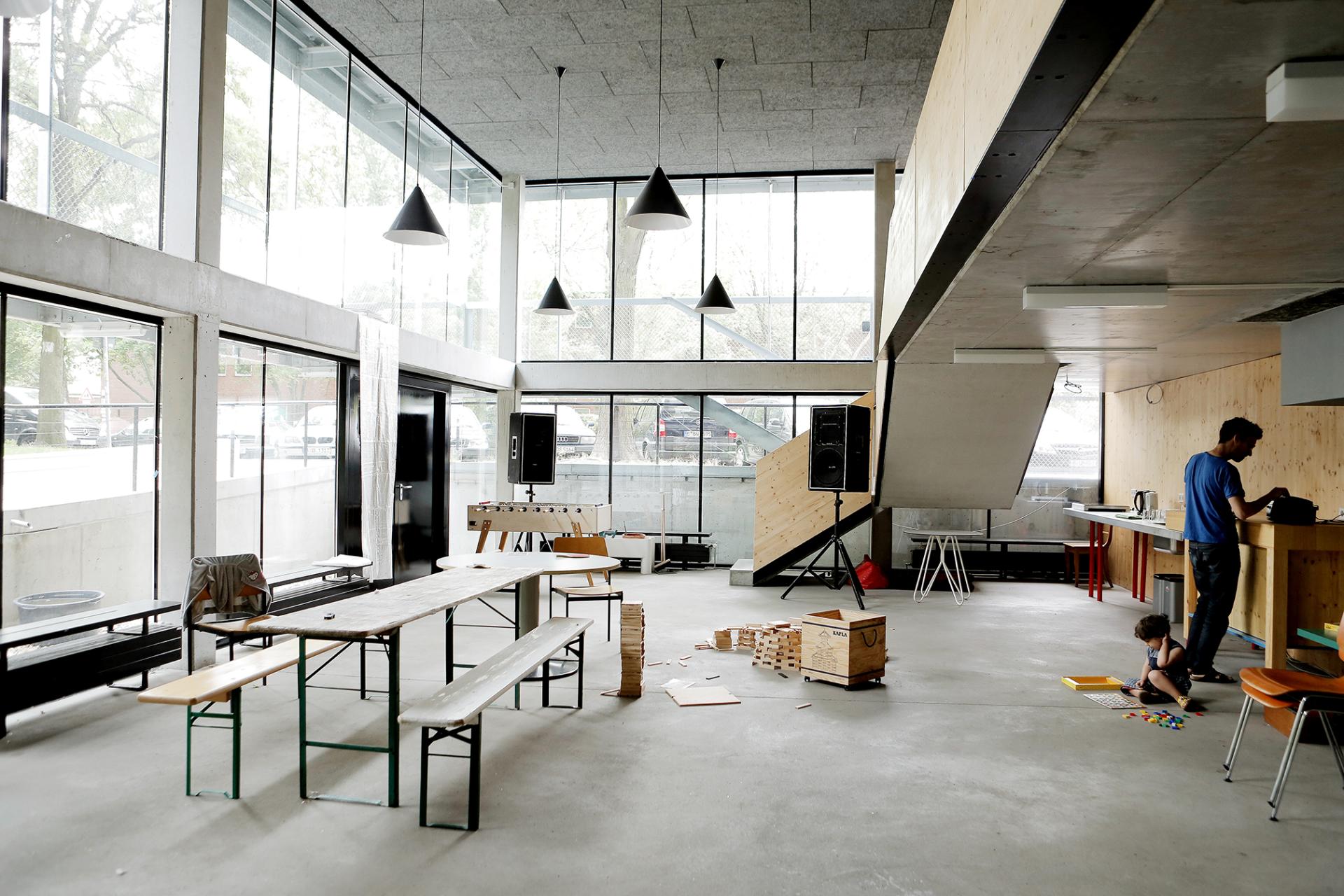 One of the focal points of the project is to relate the need for affordable and collective housing to civil society. Initiated and accompagnied by the architects, the cooperative participated in a concept-based bidding for the building plot launched by the Senate of Berlin to encourage civic engagement for fair and collective housing. Social, cultural, economic and ecological aspects have been considered equally to define a contemporary sustainable approach to urban living while publicly reflecting the process of decision making and planning during the development and realisation of the project. The building plot has no fences and the building integrates itself openly into the gardens of a post-war social housing estate. The double-height, flexible community space is connected to the building´s main access as well as to the surrounding public space and the street. It is a space of private and public encounter and exchange and is used for various semi-open events by the inhabitants, for neighbourhood activities and for other public events.