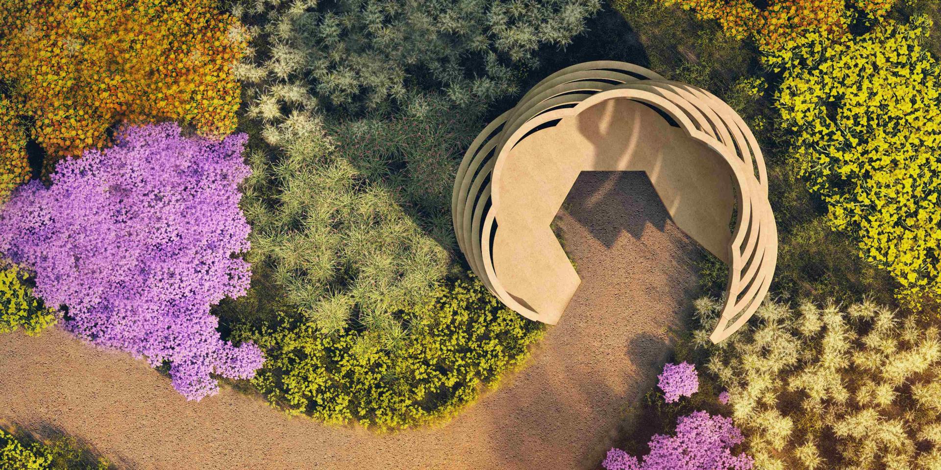 In my work as a visual artist, an ordening by mathematical patterns or modules, fluid curves that recall nature and architecture, and use of tactile materials is characteristic. In 2014 I had an idea for a small pavillion. It looked interesting but I was looking for a way to add an extra layer to it, something you actually wouldnot expect with a sculpture. I envisioned a sculpture in a natural surrounding, an atmosphere, a special place in the public realm that would bring our sensory perception to a higher level.