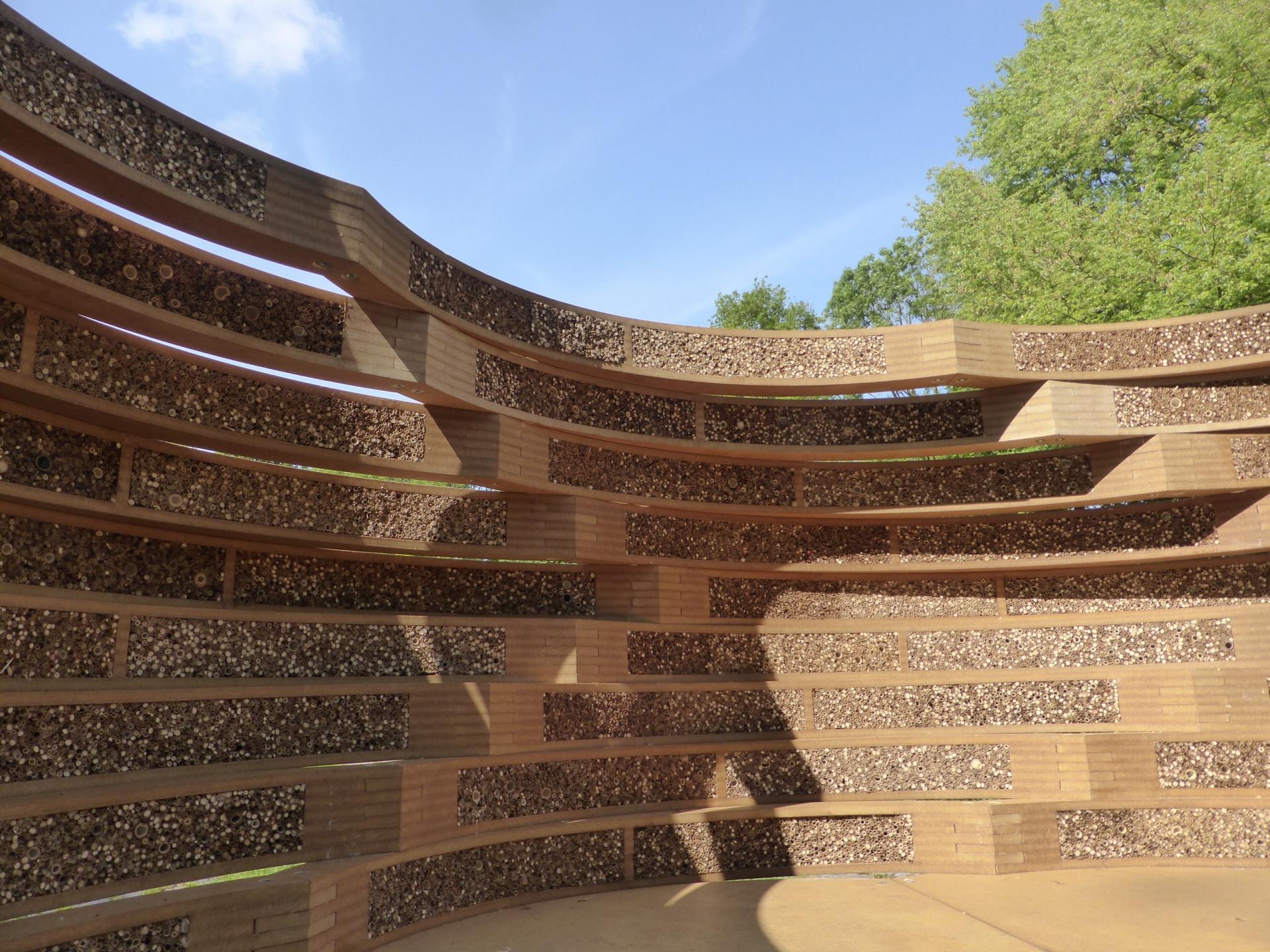 Once seated, attention is drawn to the changing patterns of light come through the overlapping layers. The stems offer insects individual tunnels to make sealed cells filled with an egg and a foodpacket.