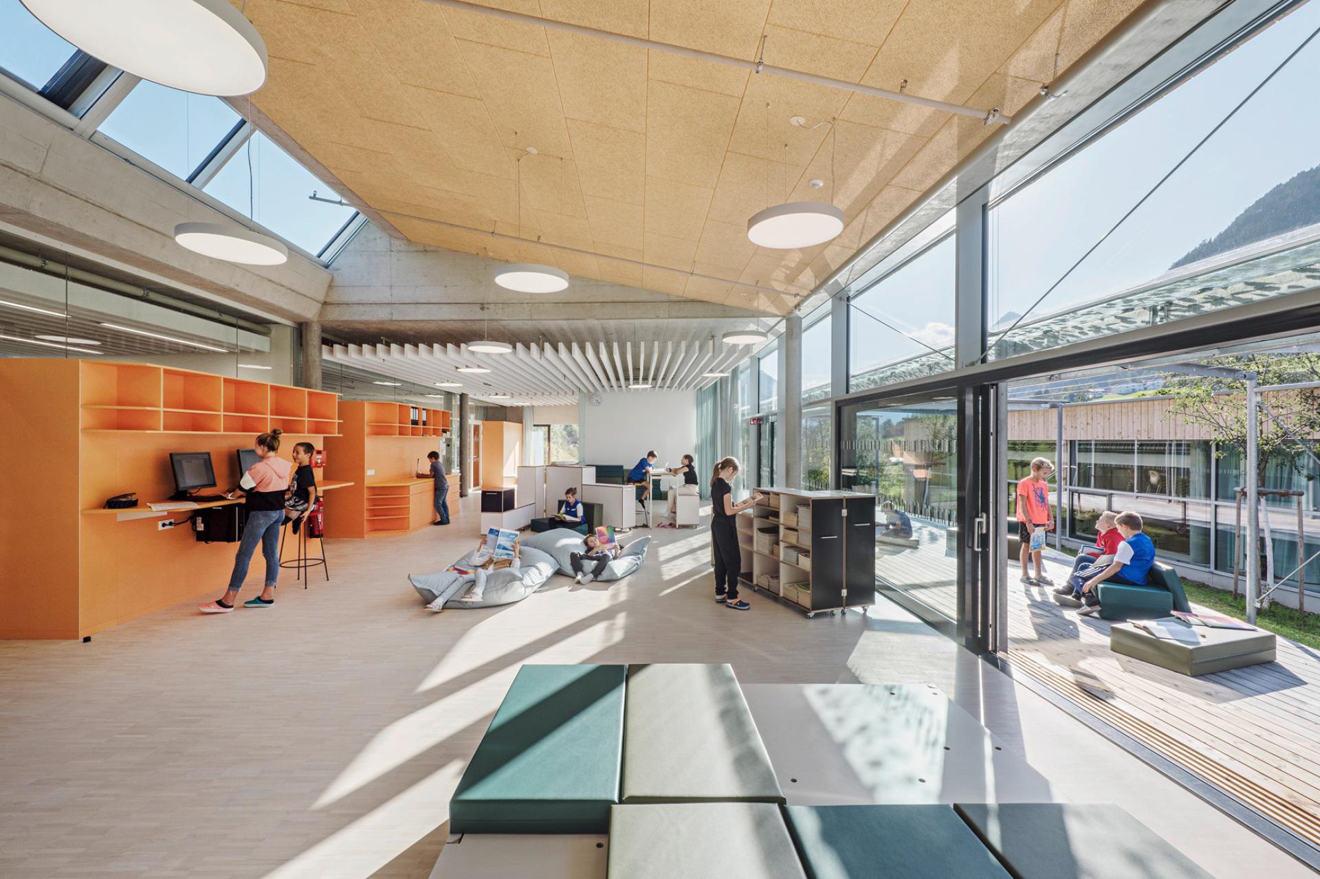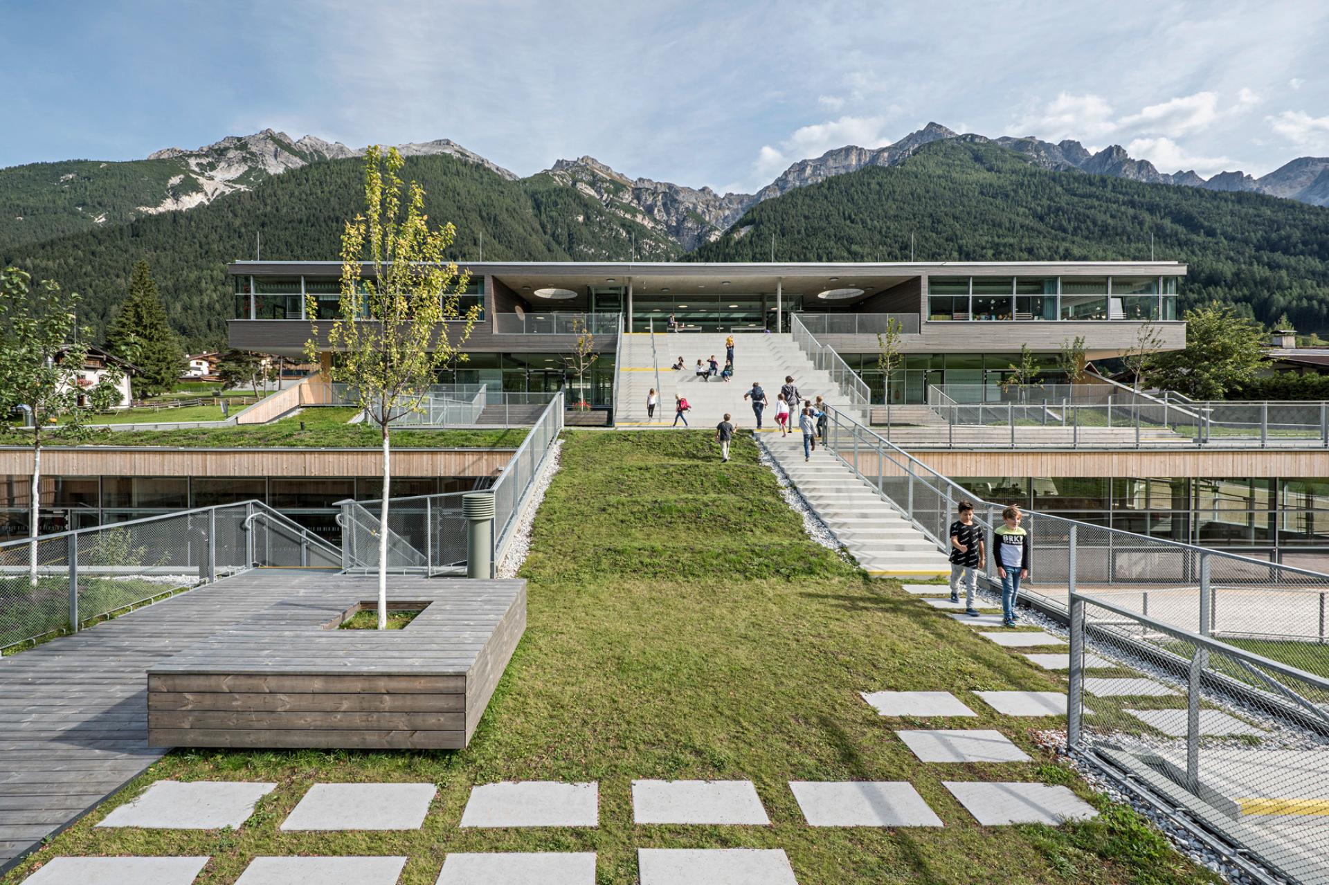 The new school campus in brings together several schools previously scattered across different districts: a secondary school, a ski secondary school with a boarding school, an elementary school and a vocational school, kitchen and dining hall and a wide range of sports facilities are offered to the students and community residents.