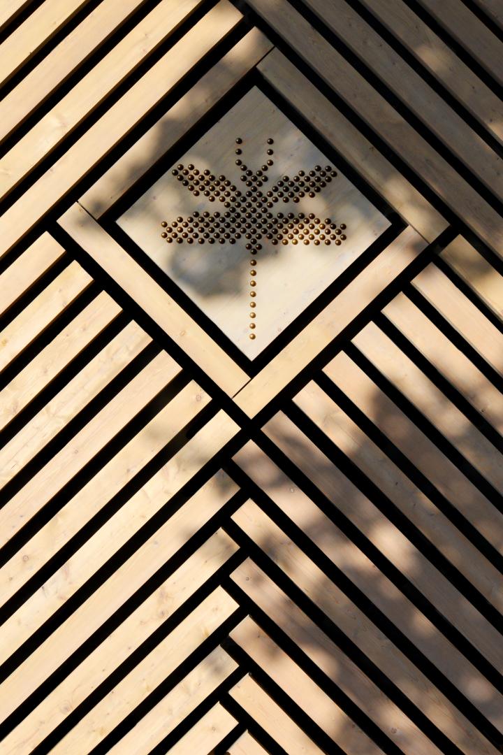 La forme du projet emprunte sa géométrie archétypale et typique au centre-ville historique. Form réinterprète leur profil iconique pour dessiner un symbole approprié. La nouvelle école est installée au même niveau, et en linéaire, ce qui permet de créer des identités volumétriques distinctes par espace, avec des largeurs et des hauteurs variables par programme. A l'intérieur ces volumes capables d'offrir une spatialité particulière et généreuse aux locaux d'enseignement. Ces volumes sont très largement ouverts sur les aires de jeux et en toile de fond de la «promenade» boisée. Tous les espaces intérieurs, conçus avec l'échelle de la petite enfance comme référence majeure, sont bercés de lumière naturelle, dans des espaces lumineux et chaleureux. L'échelle du toit en pente à 45 °, dessine une maison comme un enfant pourrait le faire, simple, iconique, graphique. Les symboles de bogues appliqués dans le pignon de la classe sont utilisés à l'intérieur pour la signalisation