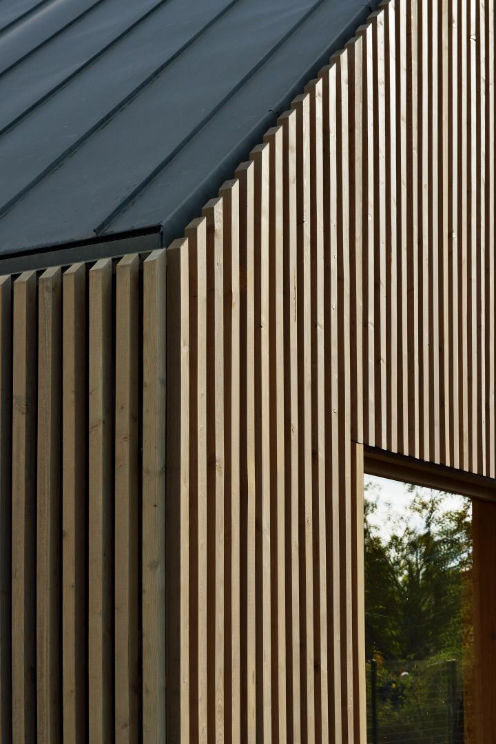 Le projet est totalement construit à la fois en ossature bois et en bardage. L'isolation est locale et biosourcée. la menuiserie est en bois. La construction était encore achevée en 10 mois rapides.