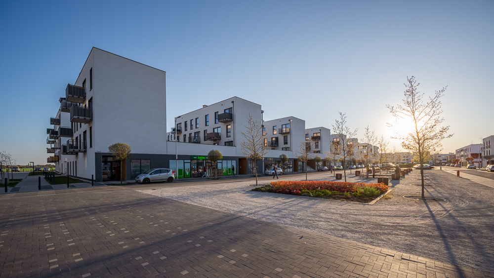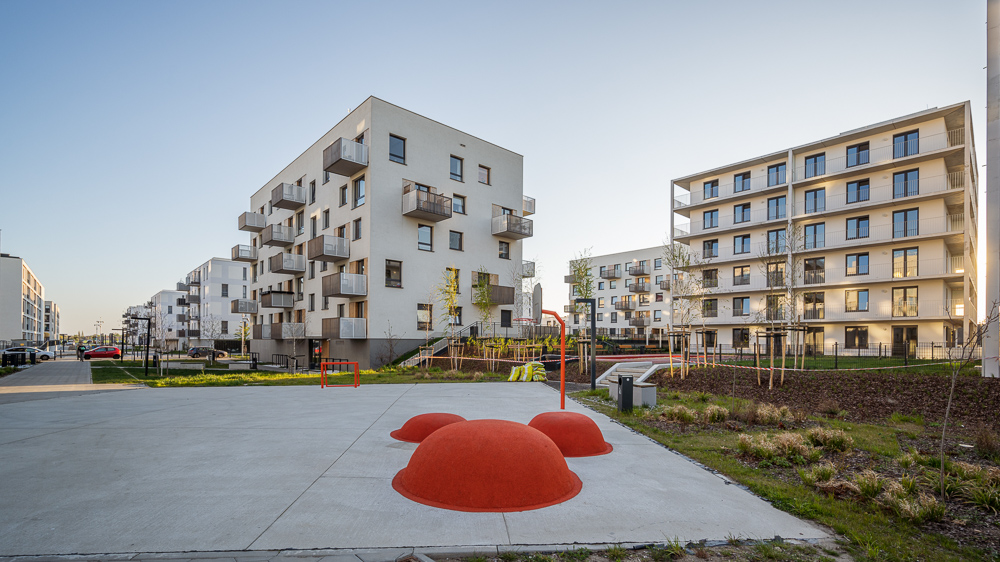 The inclusiveness of the new district was a defining design assumption and a priority. Designing a part of the city with the involvement of future residents assumed obtaining from them knowledge about their needs. Therefore, the area has been equipped with a network of services and media, with no communication barriers, ensuring that the needs of people of all ages and backgrounds are met. The residents were given common green parts to cultivate, and mini-gardens devoid of fences to be cultivated. Water retention and recreation reservoirs in common areas encourage relaxation in the vicinity of neighbors. Pedestrian prioritised space is rich in public services: kindergarten, nursery, nursing home, market place, church, community centre. A special role of the space between the buildings: public, sami-public, neighbourhood and private. Collective effort to build a friendly housing estate. Goal to create human-centred housing, to reinvent a holistic approach in designing city districts with simple humane happiness in mind, based on accessibility and aesthetics. Lower property costs, no developer intermediation, lower marketing and sales costs, energy efficiency and focus on low operating costs. Affordable materials, affordable prices and differentiated offer were invitation for people with different backgrounds and from different social groups to step in the new project, and share their expectations, hopes, plans for the good of the shared living space. Complex network of services, communication and green areas was intended to be self-sufficient. We wanted to build a complete and coherent housing estate equipped with a set of services adequate to the current needs of the residents. We would like the children to be brought up in a kindergarten around the corner, play football on a nearby pitch. Designing a city district as an organic whole, tailored to the needs of people of different age, gender and status was a political task.
