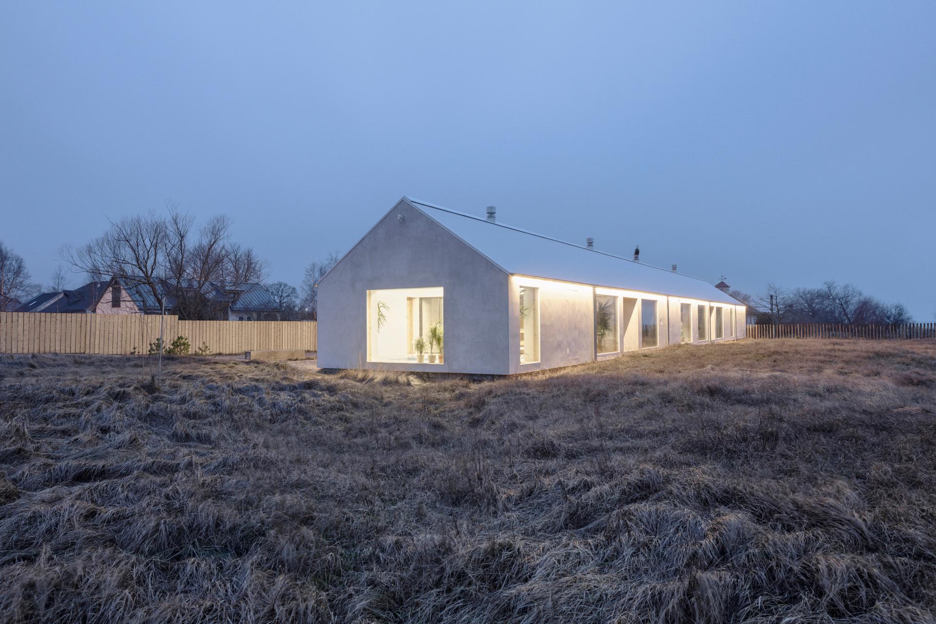 The house reminds of a sand dune that catches all the salt carried by the sea breeze. Therefore the name - Salt house. This idea is reflected in the natural cladding material of the facade - natural lime plaster, which is similar in its structure and colour to the coarse salt.