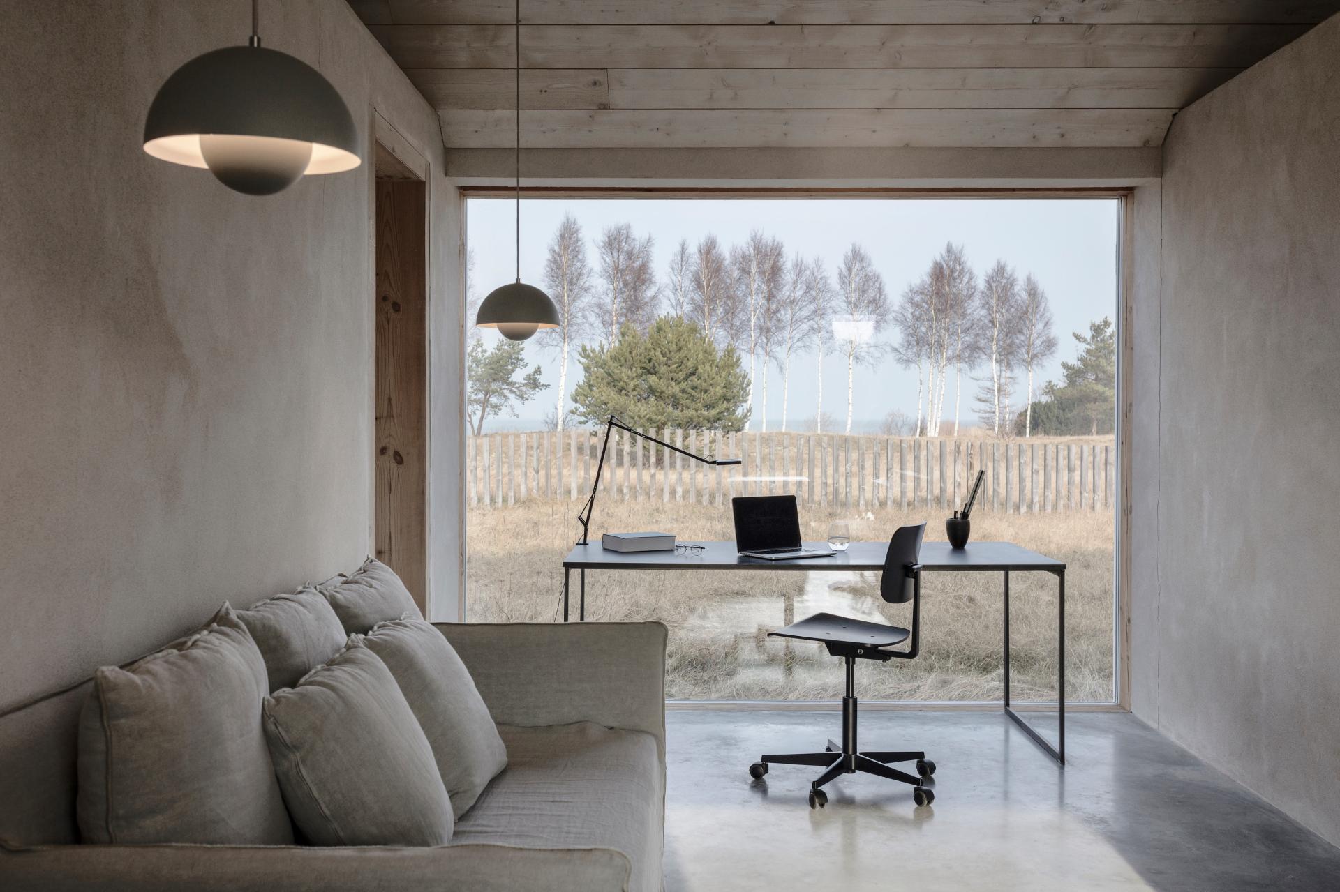 The see-through fence of the plot is made of freestanding timber poles, the line following the undulating landscape, making private garden territory blend with the rest of the meadow - a biotope that extends to the sea. The volume of the house is thin and semi-transparent. The open plan and openness to the outside, connection between the interior and exterior, connection of the garden to the meadow allows the building to be a part of the landscape, not a secluded private territory.