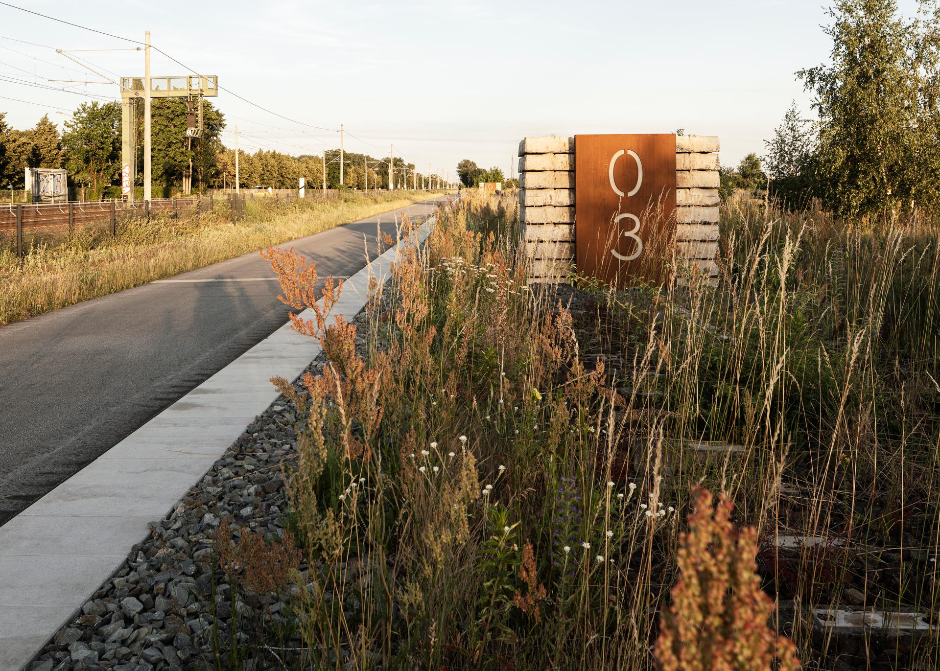 When planning the new habitats, the formation of the gravel areas or the fauna-friendly path surfaces, we worked closely (this was new for us) with the Siedlung und Landschaft office, which gave us support from a nature conservation perspective. This enabled us to combine our design ideas with the requirements for nature conservation and to implement the planning in the sense of a "Animal Aided Design". The office also developed the maintenance concept for the green corridor. An important project partner was Deutsche Bahn (German Railways), which gave advice to the planning with regard to requirements for rail operations on the adjacent tracks. In close cooperation with the traffic planning department of WISTA.Plan GmbH, the bike path was integrated into the regional bike path network. For the conception of the hectometer we cooperated with the graphic design office Kleinschmidt, who helped us to set the real railroad lettering.