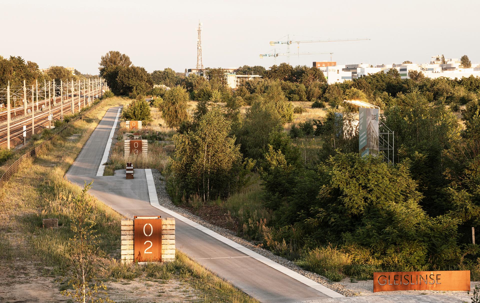 The transformation of former railway sites for new uses such as the creation open spaces combining uses and nature conservation is among the current tasks of landscape architecture in today's big cities. The concerns for habitat conservation were pivotal in the design of this green corridor on the edge of the so-called "Gleislinse", as the preservation and integration of existing biotopes for sand lizards or the rare stonecrop were an important part of our concept.