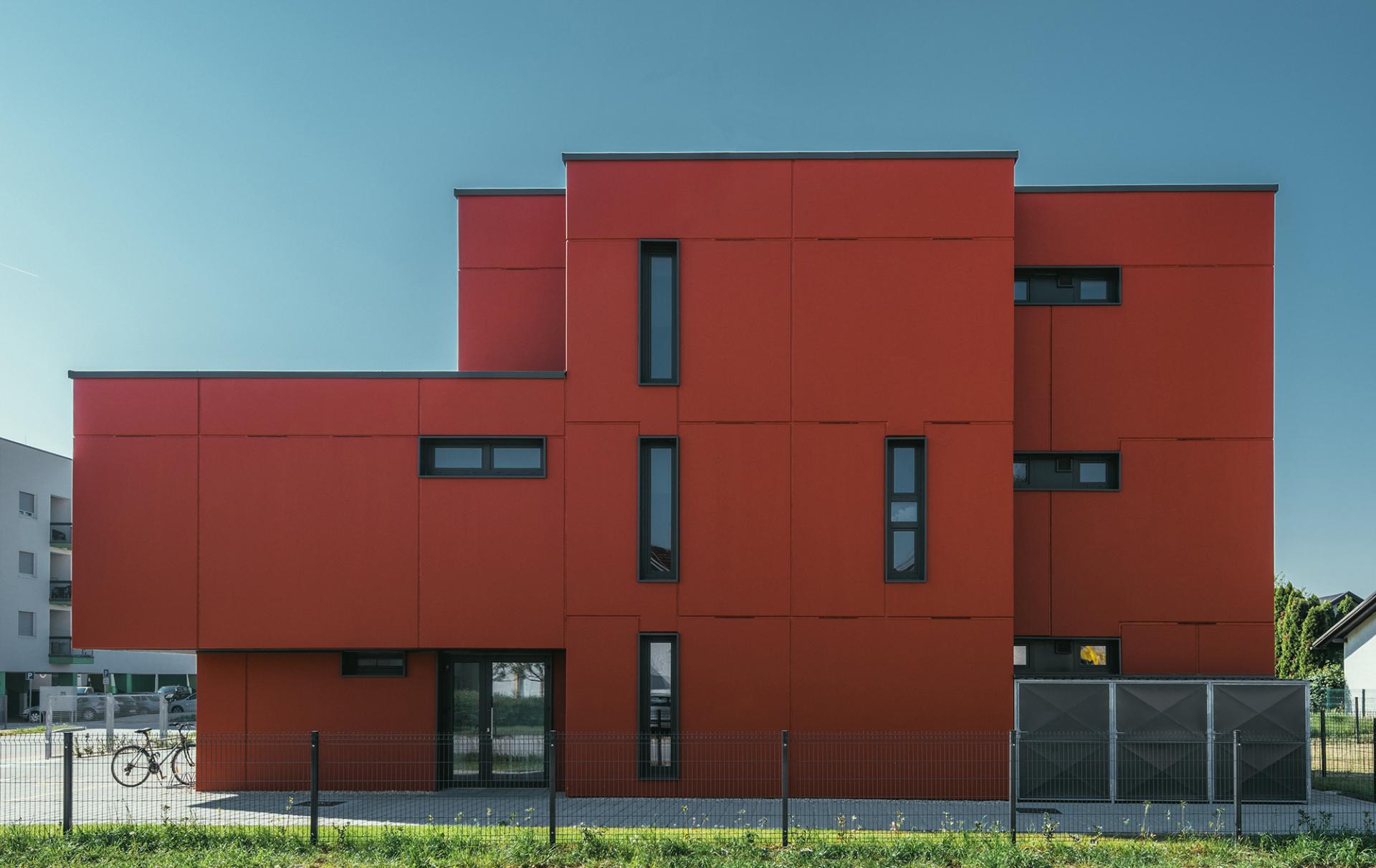 First ECO-SANDWICH® House is a unique example of a holistic and innovative approach to sustainable architecture. The house is located in the Green Quarter of City of Koprivnica in Croatia, within the program of social housing. ECO-SANDWICH® wall system was developed as a result of cooperation between Croatian scientific institutions and industry. It is a ventilated prefabricated wall panel that utilizes recycled construction and demolition waste (CDW) and mineral wool.