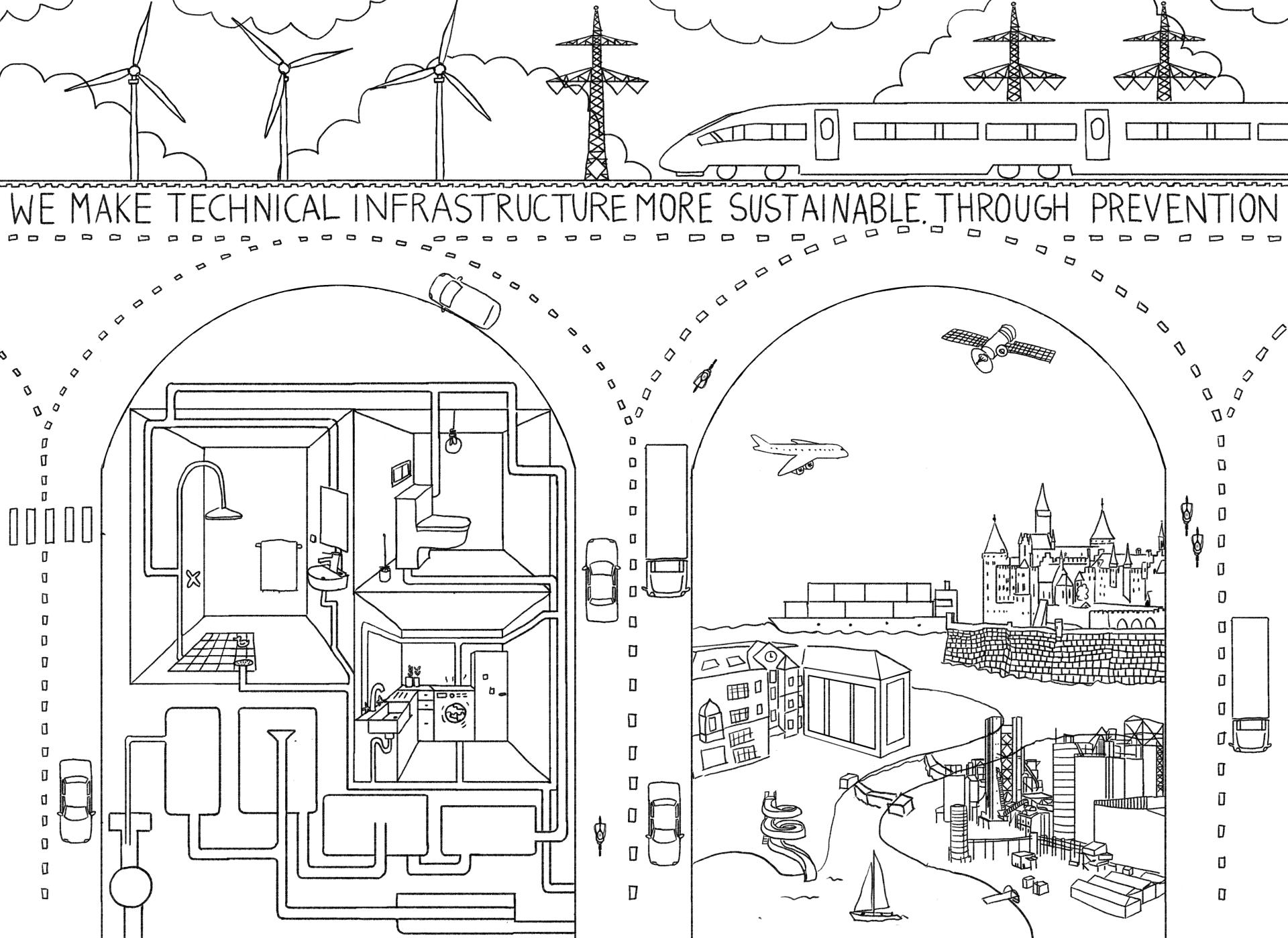 Therefore, the KIT Innovation HUB – Prevention in Construction realizes the idea to extend the restoration-free service life of infrastructure through preventive actions: e.g., alternative building materials, technologies, construction methods or services. Their efficiency is impressive, as the financial and environmental impact of these measures is about 3-5% compared to the impact of a restoration measure. These prevention measures are developed in the KIT HUB in cooperation with all stakeholders involved in the life cycle of the infrastructure and jointly introduced into practice by applying the newly developed KIT HUB innovation process.