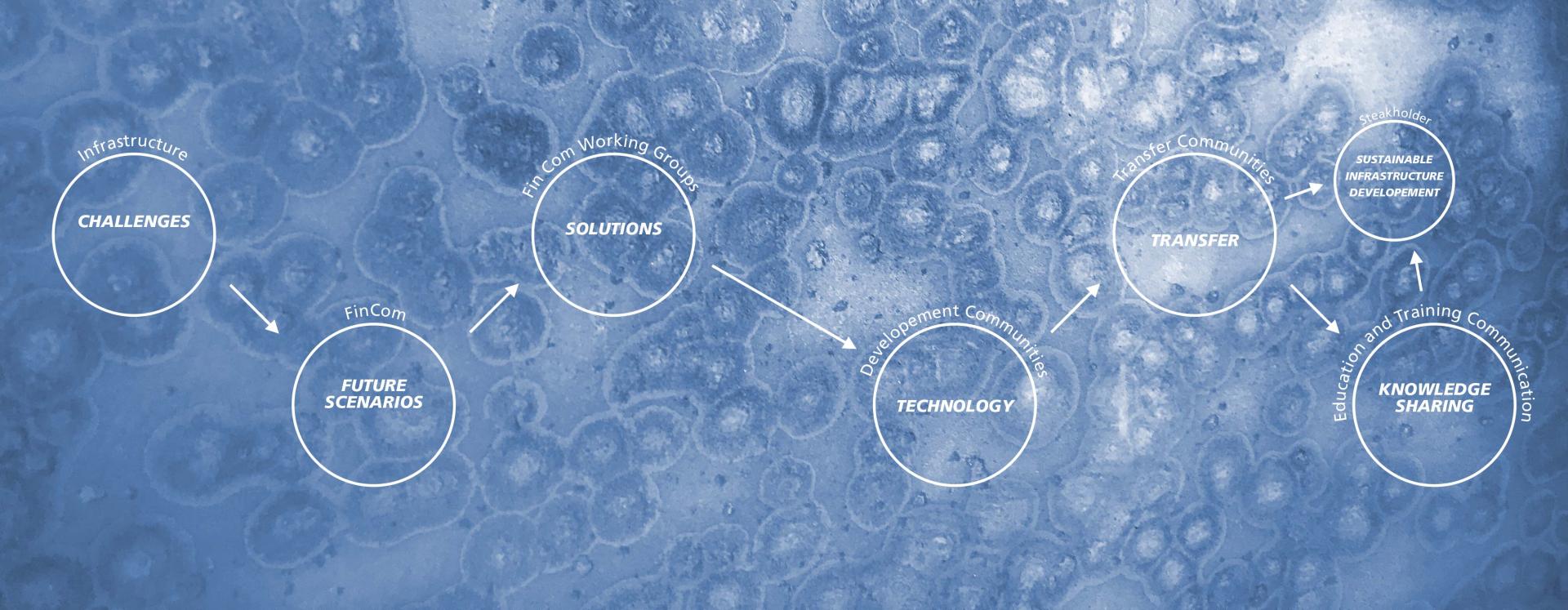 Infrastructure constructions are characterised by their complexity and long lifespan. Many stakeholders are involved in their creation, either as part of the construction value chain or later in the life cycle of the building. Due to this typical structure of the industry, the stakeholders cooperate intensively within the individual construction and utilisation phases, but the interfaces between them are only very weakly developed. Consequently, communication between stakeholders across construction period and over time is significantly limited. In practice, decisions made at the beginning of the life cycle, e.g., materials selection, often cause serious consequences several decades later, e.g., for recycling. Megatrends, such as climate change or resource scarcity, already have a far greater impact on the construction sector than commonly expected. Therefore, the rapid development and introduction of innovations is indispensable; on the other hand, there is a conservative attitude of the industry, lots of regulations and the focus on daily business. All these factors delay, if not prevent, the European construction industry from adapting to tomorrow's challenges. Therefore, Foresight Innovation Communities (FinCom) were developed in the KIT HUB. To bring all actors of the value chain, i.e., producers of raw and building materials, planners, building contractors, as well as citizens and public building owners, to a round table. Participants are free to attend the events, so the only important thing is the contribution they make to the content. In practice, the influence of megatrends on individual infrastructure sectors is discussed. Finally, there is a common view of future developments and the resulting challenges and opportunities. This is particularly helpful for SMEs, as it reduces investment risks in the development of innovations. Building on this, the stakeholders develop innovative products, technologies, or services on their own or in cooperation with KIT.