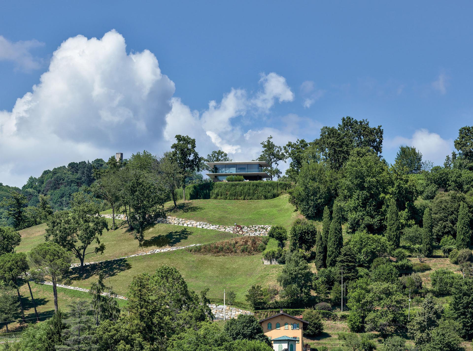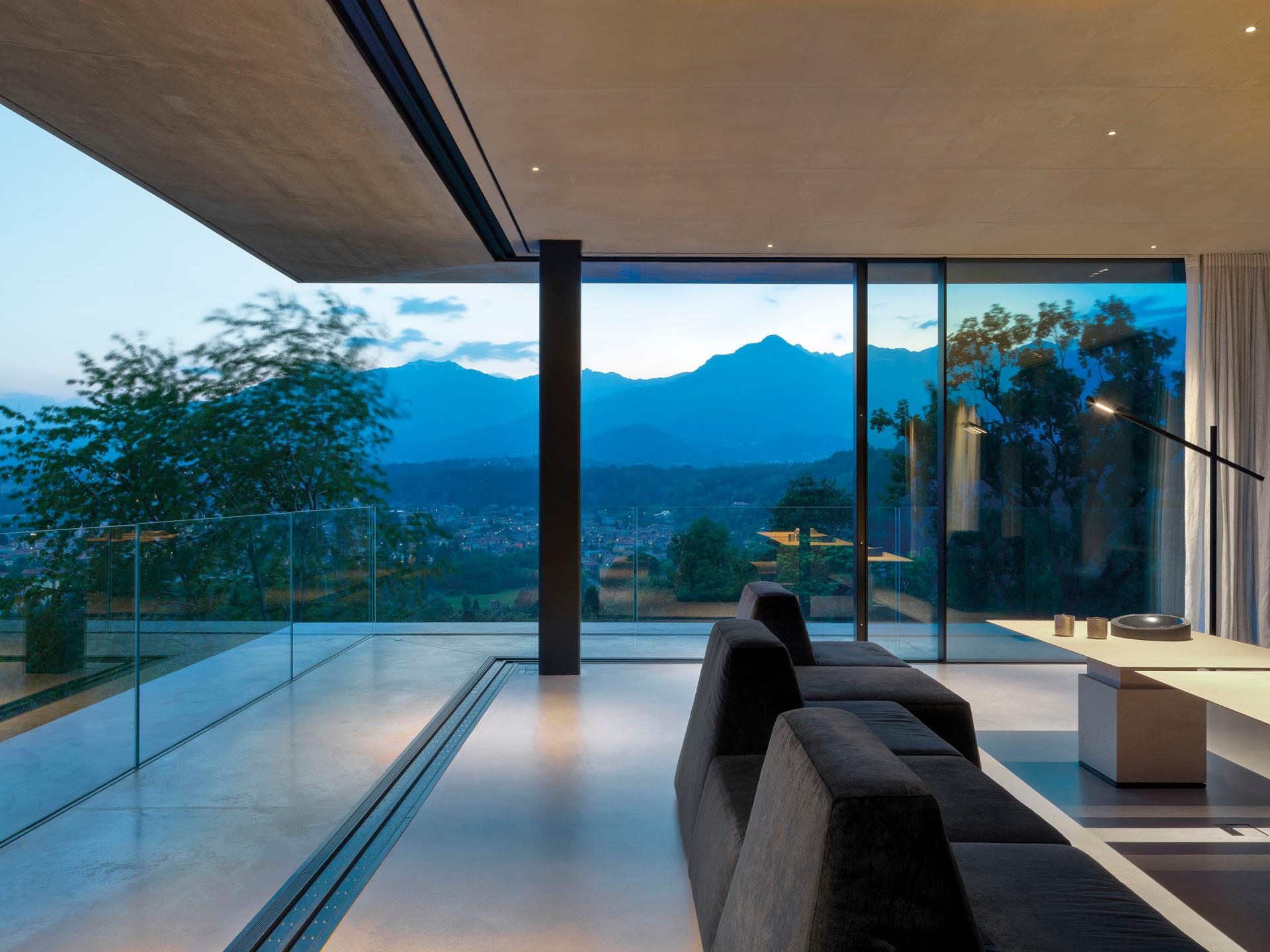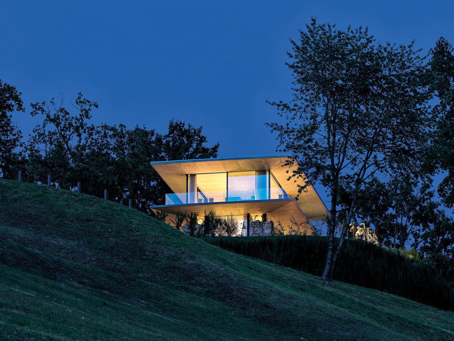 Teca House- a transparent container immersed in nature, comes from the ruins of an abandoned farmhouse on the Biellese hills. The rural wall system becomes the base, the connection with the territory from which the new intervention is born, light and transparent: a structure in concrete that opens towards the landscape with two large horizontal wings and a completely openable glass layer that contains the volume. The project takes inspiration from Philip Johnson's Glass House. The building has a covered area of about 60 square meters that extends by a quarter if we also include the verandas, delimited by glass parapets, which completely surrounds the volume. The flexibility of the project makes this space ideal for hosting a party or an intimate refuge for reading or practicing yoga. It can also become an exceptional guesthouse for occasional guests of the landlord and his wife who live in a beautiful villa nearby, located at the foot of the hill. Teca House was conceived as a precious cultural container, a landmark that the landlord, after selling his company, an important textile industry, wanted to donate to the territory. Teca House is also a brand that will give life to cultural events and activities, a website, recently inaugurated, tells its story.