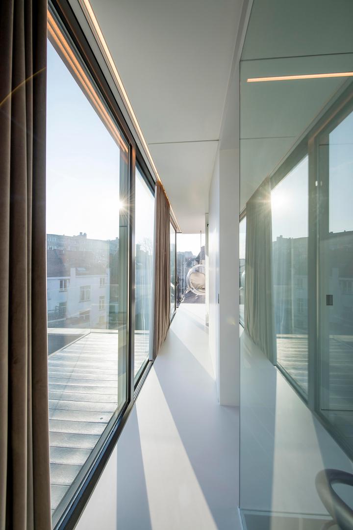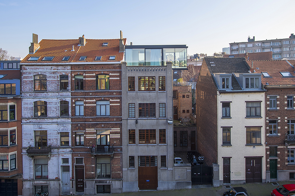 In order to keep families living in the city we have to offer them spacious and adaptable conditions. By transforming the last 2 floors of an existing industrial building and adding an extension we house a 3 bedroom apartment with music room and sculpture studio. The arts and crafts spaces coexist with the residential space in the historical heart of Brussels.