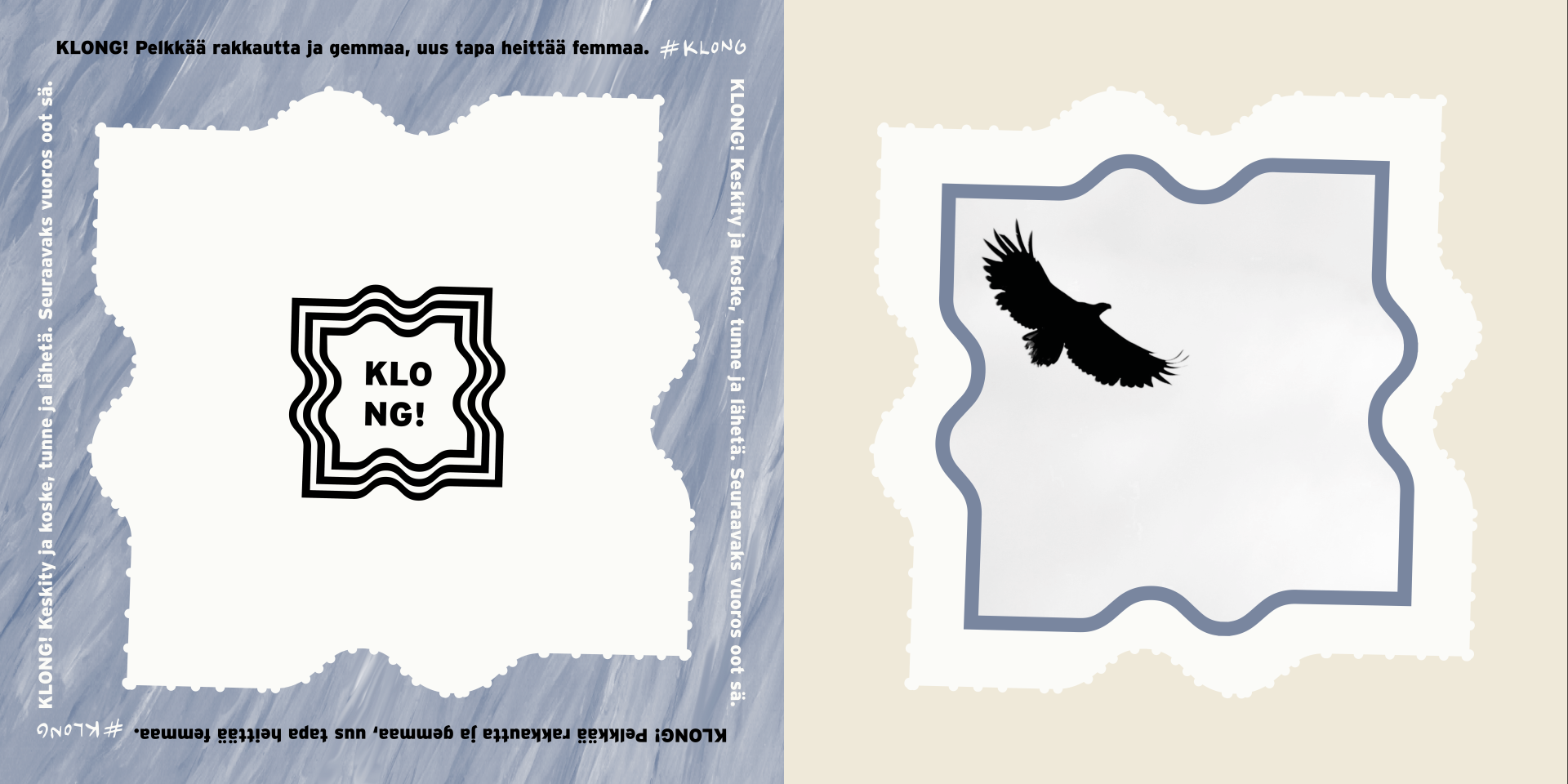 The base of KLONG visual concept is bold, colorful and easy to modulate with different promoting subjects. The logo design is a homage to traditional postal stamps and marks with its wavy lines, that is also used in the coaster shape to maintain an identifiable identity. The wavy lines that loop to the stamp-like shape, represents perpetual motion, that we think correspondence can be.