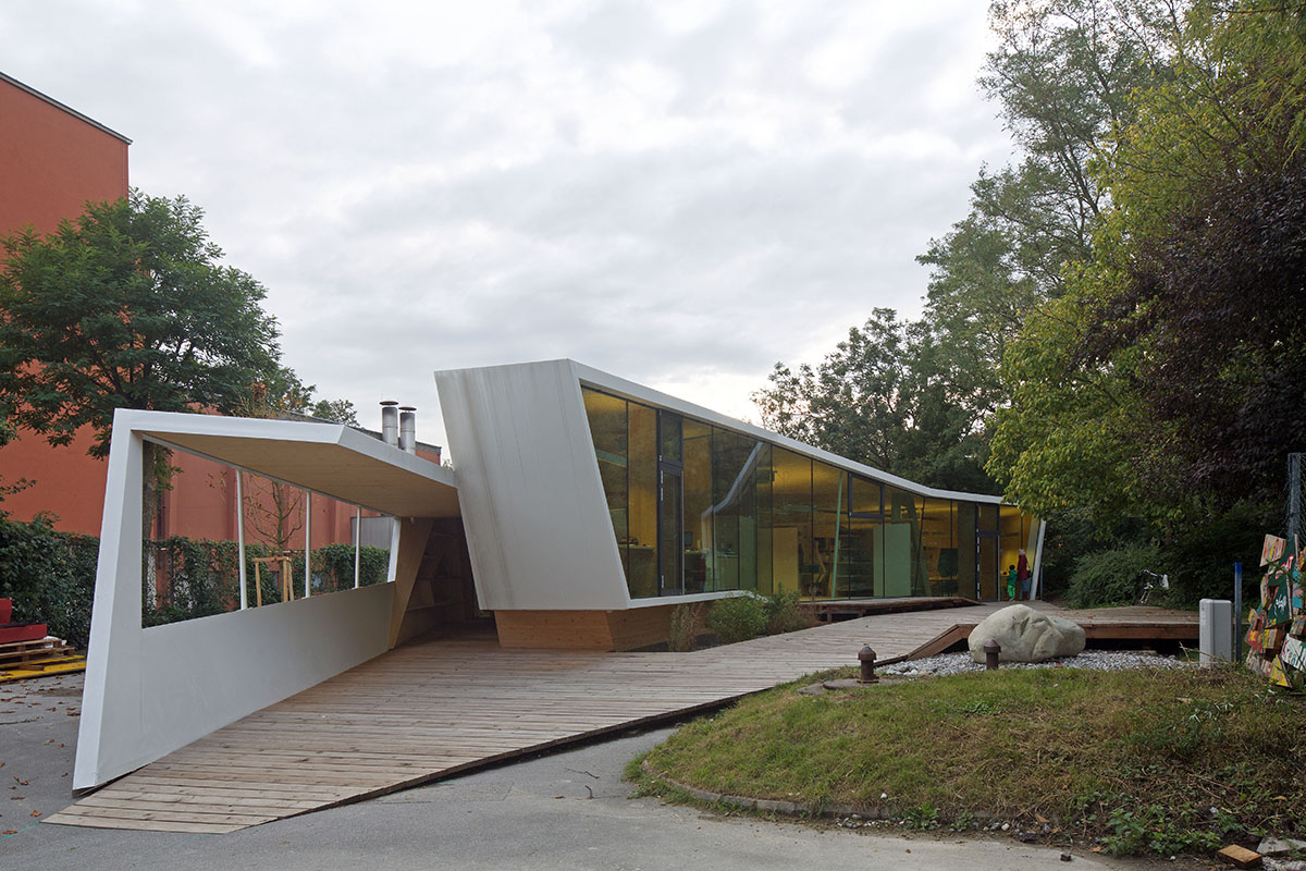 Location, materiality, function, spatial program, orientation and content interact ingeniously and convey architecture at its highest possible quality. Children, young adults, artists, and architects alike, all feel a true sense of belonging and connection to the experimental, ambiguous but tangible and comprehensible form language of bilding. The sensitive approach to openings, transparency, retreat areas, quiet areas, connections into the park and from the park into bilding, flowing transitions of all space-forming elements such as floors, walls, and ceilings, with insights and outlooks impact and surprise all age groups beyond the forces of habit.