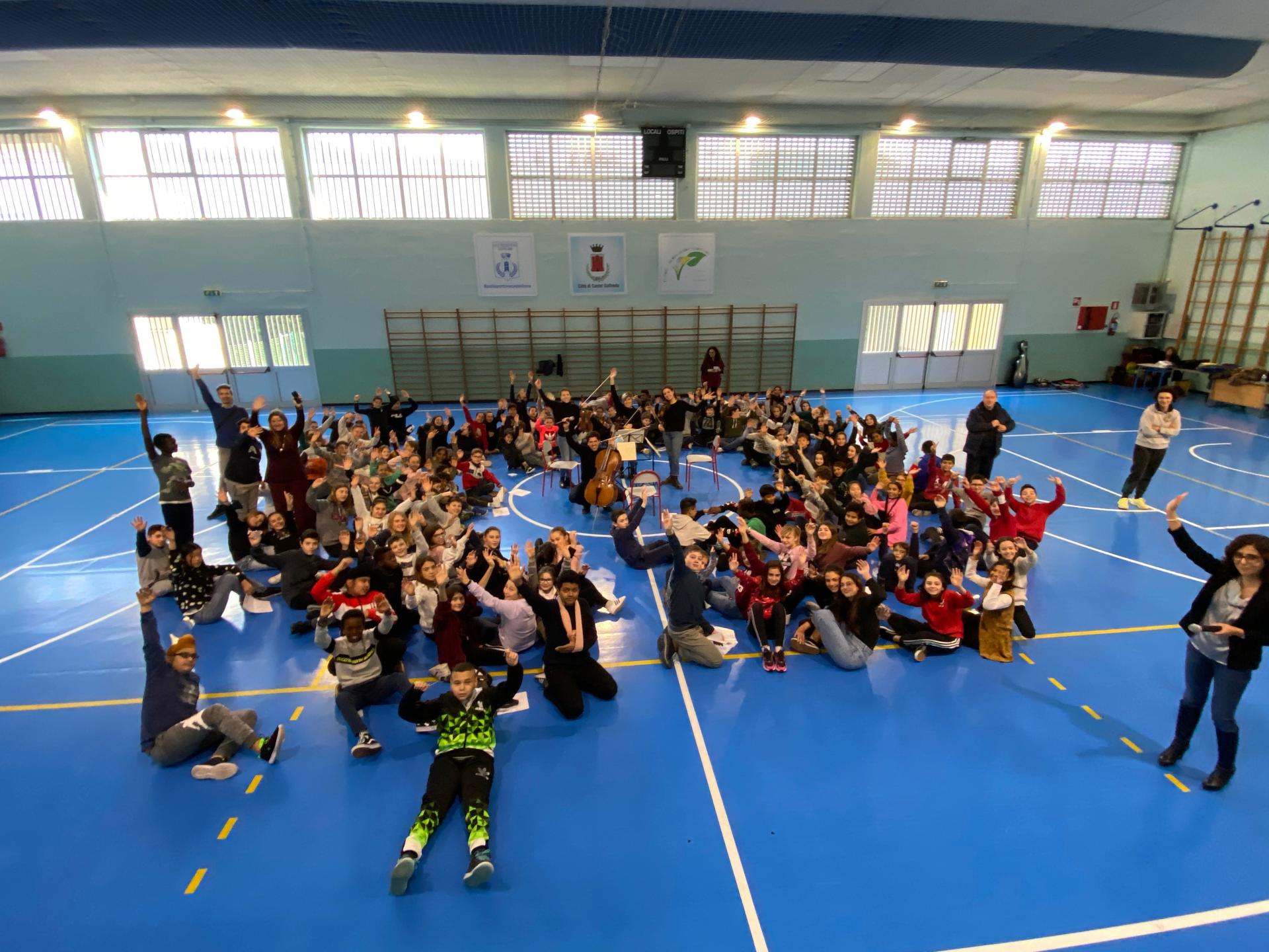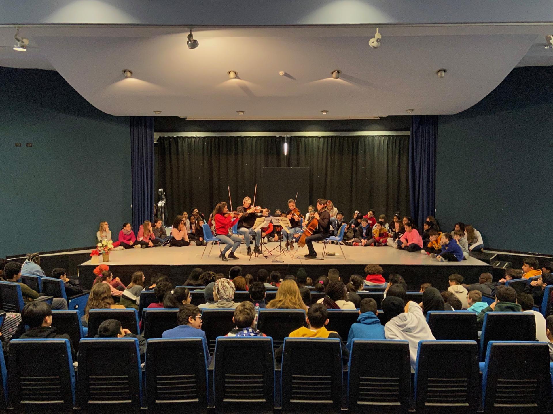 By now, we have organized 5 conversation-concerts of FourFun in Italy and one in Qatar. In total, we have reached more than 500 Italian students and around 250 Qatari students of primary school, aged from 6 to 13 years old. 16 professional young musicians (4 string quartets) and more than 30 school teachers have been involved.