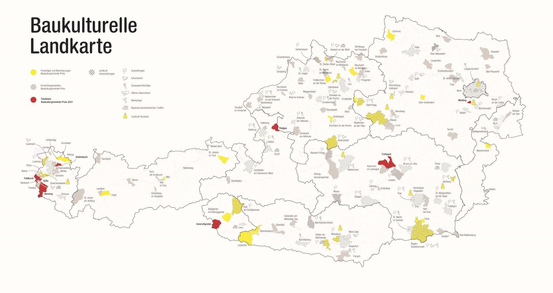 Since 2009, 128 municipalities have submitted candidacies for the "LandLuft Baukulturgemeinde-Preis", and 32 of them have been recognised as Baukultur municipalities. In a traveling exhibition presenting the award-winning municipalities and the people behind this success has already been shown in more than 100 places in Austria and beyond. We sold more than 15.000 accompanying books. In two major nation-wide research projects implemented in Germany, the existing network of exemplary municipalities has been expanded.