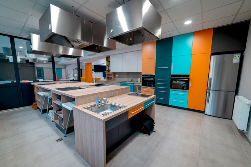 Przystań Śmidowicza 49 is fully adjusted for everyone. At the entrance there are ramps for people who travel by wheelchairs. Inside there is an elevator which allows access to all floors. Special surfaces were created for blind people and those with poor eyesight. Moreover rooms can be identified with the use of Braille alphabet and ahead of sanitary rooms typhlographic signs are placed. Toilets are equipped with call system for disabled people. Kitchen is also designed with a thought for people who travel by wheelchairs but for children as well – adjustable workspace, sink and stove. The ovens are specially designed - at the right height and with a retractable top.