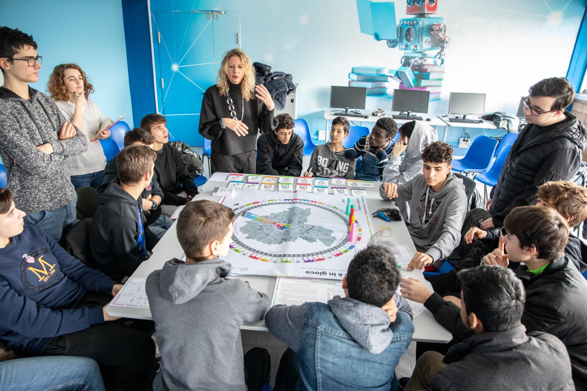 The city's main witnesses of 2030 Agenda implementation and operators of the field, were interviewed to collect information on experiences and projects currently implemented by local actors to reach the 17 goals. The interviews were then used to create the content of the playing cards to be drawn by the students during the first part of the board game.After the suspension of activities, the Foundation decided to invite to the following meetings several local organizations and associations so as to discuss with the students how their activities and projects were impacted by the socio-economic crisis linked to the pandemic. By engaging the civil society and supporting a compulsory reinterpretation of the 2030 Agenda goals in view of the transformed global situation.