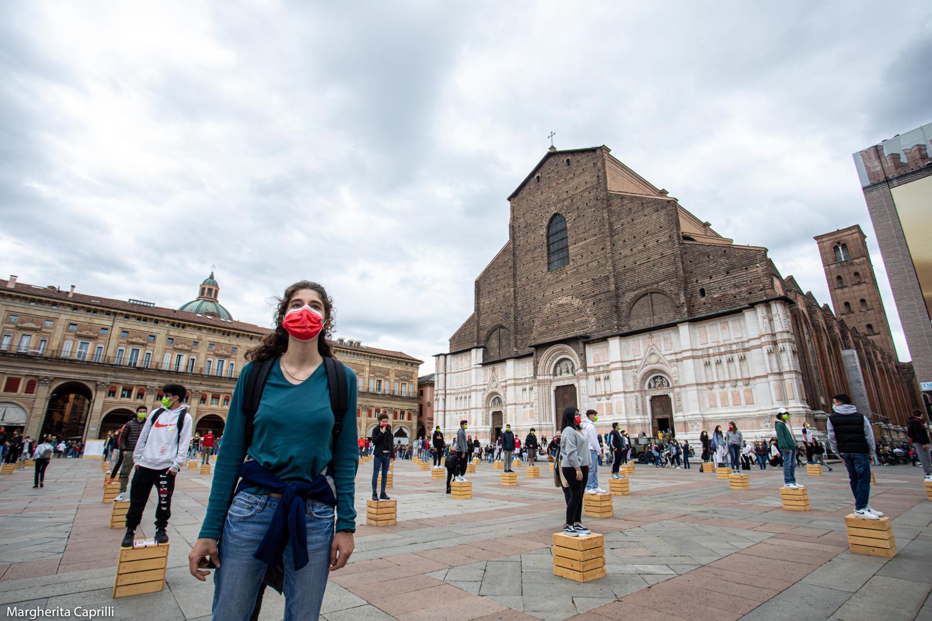 Due to the pandemic emergency, the process was temporarily suspended and restructured through video-conference meetings from November 2020 onwards. On May 16, 2021, the students gathered in Piazza Maggiore to be visitors and guides to the installation containing their video performances. On May 17, 2021, the Parliament ended with a final event at Teatro Arena del Sole, where 14 students, elected among others, presented in the form of a letter to local institutions the challenges the city has to face.