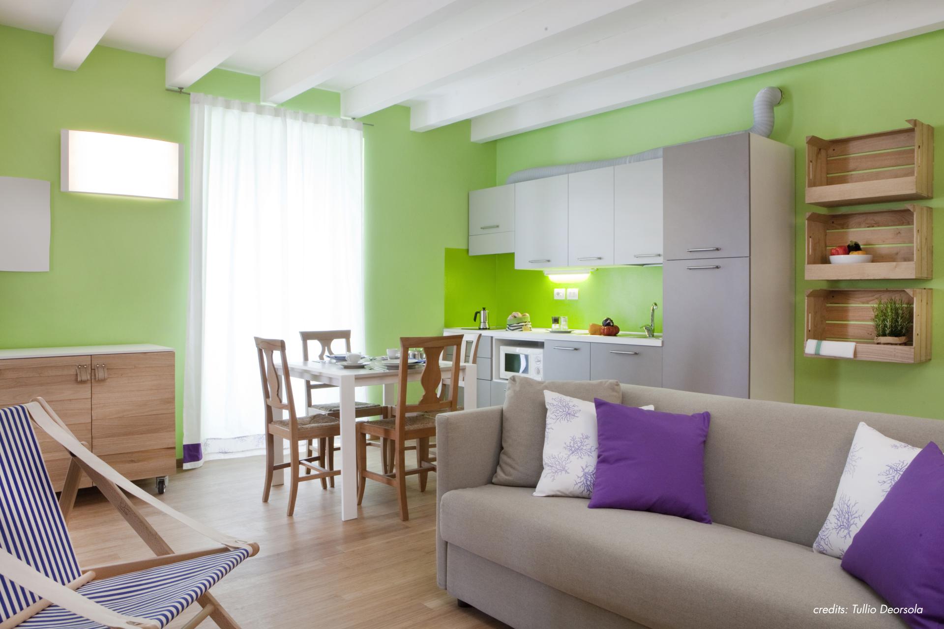 In particular, they have been built according to the bio-architecture principles, by using ecological, certified, local and recovered materials such as the sunshade made with Woodn strips (natural wooden materials), the bamboo parquet flooring or porcelain stoneware with more than 40% of recycled material and Ecolabel certification, the reuse of pre-existing elements (iron of the gates and balconies and facing stones), the insulating panels in mineralized wood wool with Portland cement, the blowing of cellulose flakes, and so on.