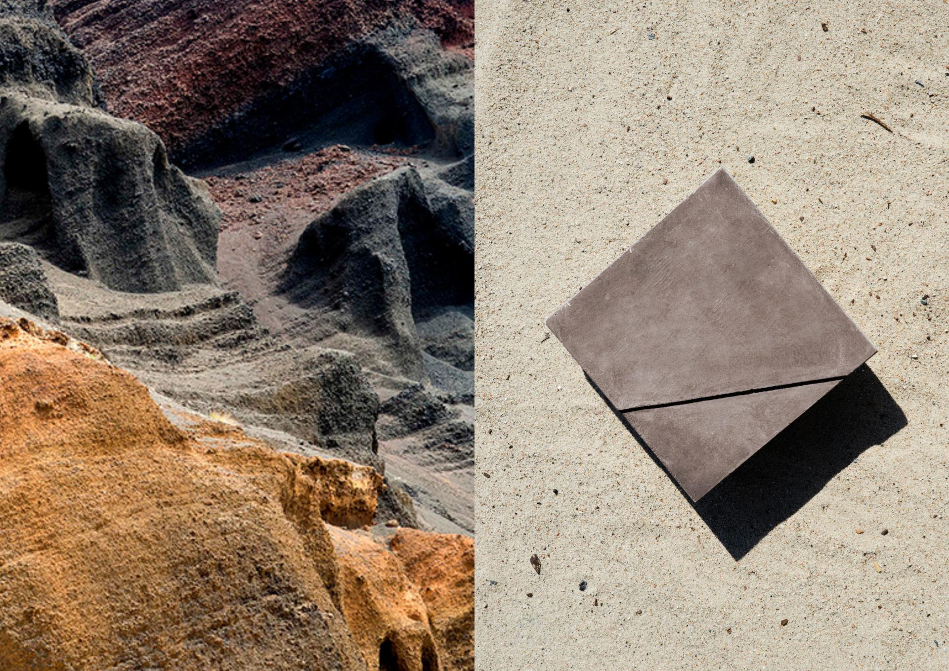 In particular we combined geometrically reduced reliefs and the use of natural colours, inspired from the landscape where the majesty and mystics of nature, the power and the strong presence of the volcanoes as well as the all over proximity to earth and soils are the all over protagonists.