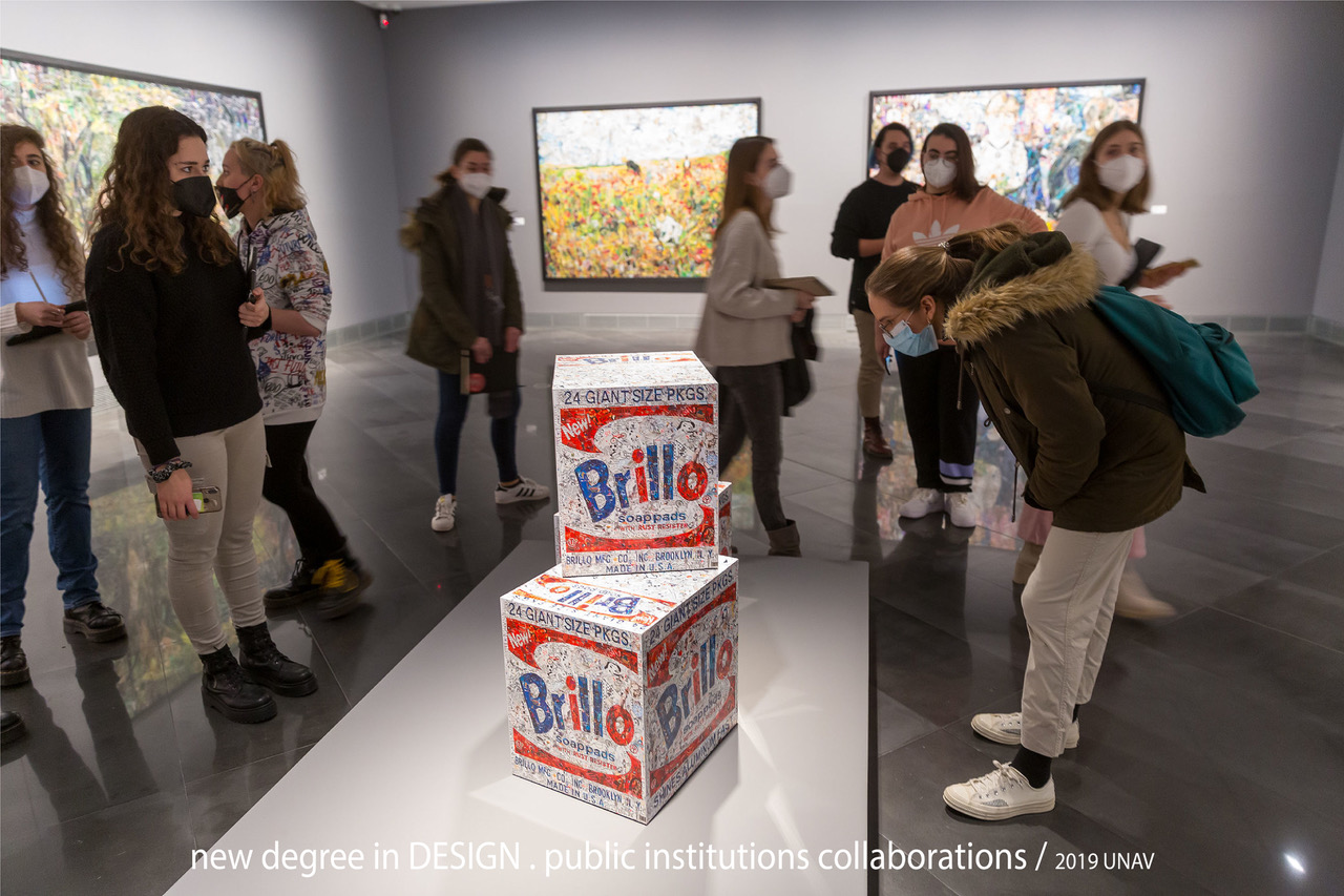 As an example of the innovative character of the Degree, second year students had to prepare a proposal for the experience of the exhibition “Memorandum” at the Museum Universidad de Navarra (MUN) that brought them the exclusive opportunity to delve into the Sevillian artist Luis Gordillo’s last large format work. Sophomore students had to intervene in the exhibit with a proposal that better explained the creative process of the artist. The public jury of this project and presentation of the proposals was actually located in the museum space of the exhibition. This unique experience was very nutritious for the students primarly, but also to the university community and spectators that were able to assist lively to a show within a show.