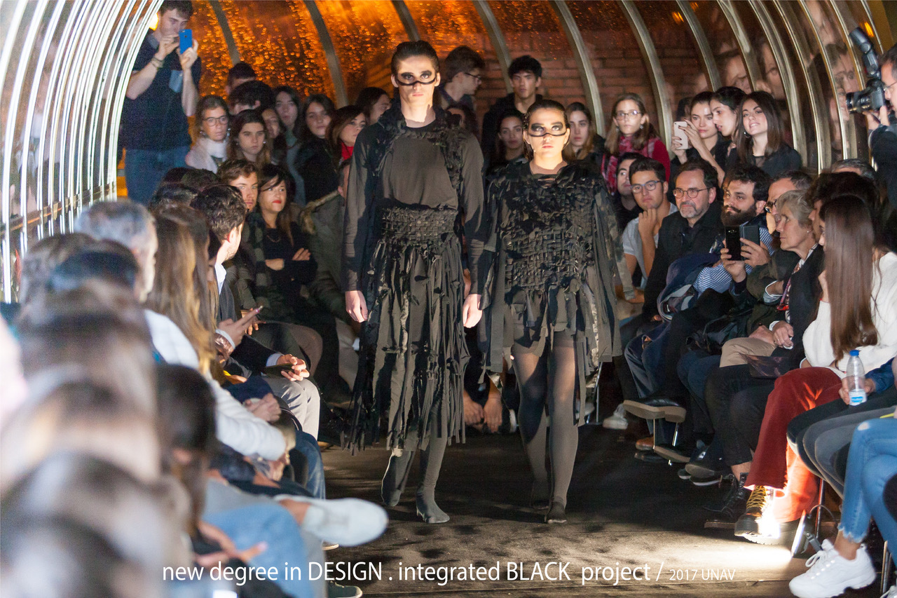- They have another project aimed beyond functionality and based on quality of experience: the “Black project” which is the last challenge for sophomore students. The whole class must work together in a holistic manner, dividing themselves in “different departments”: service design, graphic design, communication, marketing, product, fashion, etc. The exercise sets out to discover the imprint of black and its importance in the history of art and design. It is based on the user's action and the mutability of form and volume. The project is oriented to the fashion sector in a broad sense (services, product, textile).