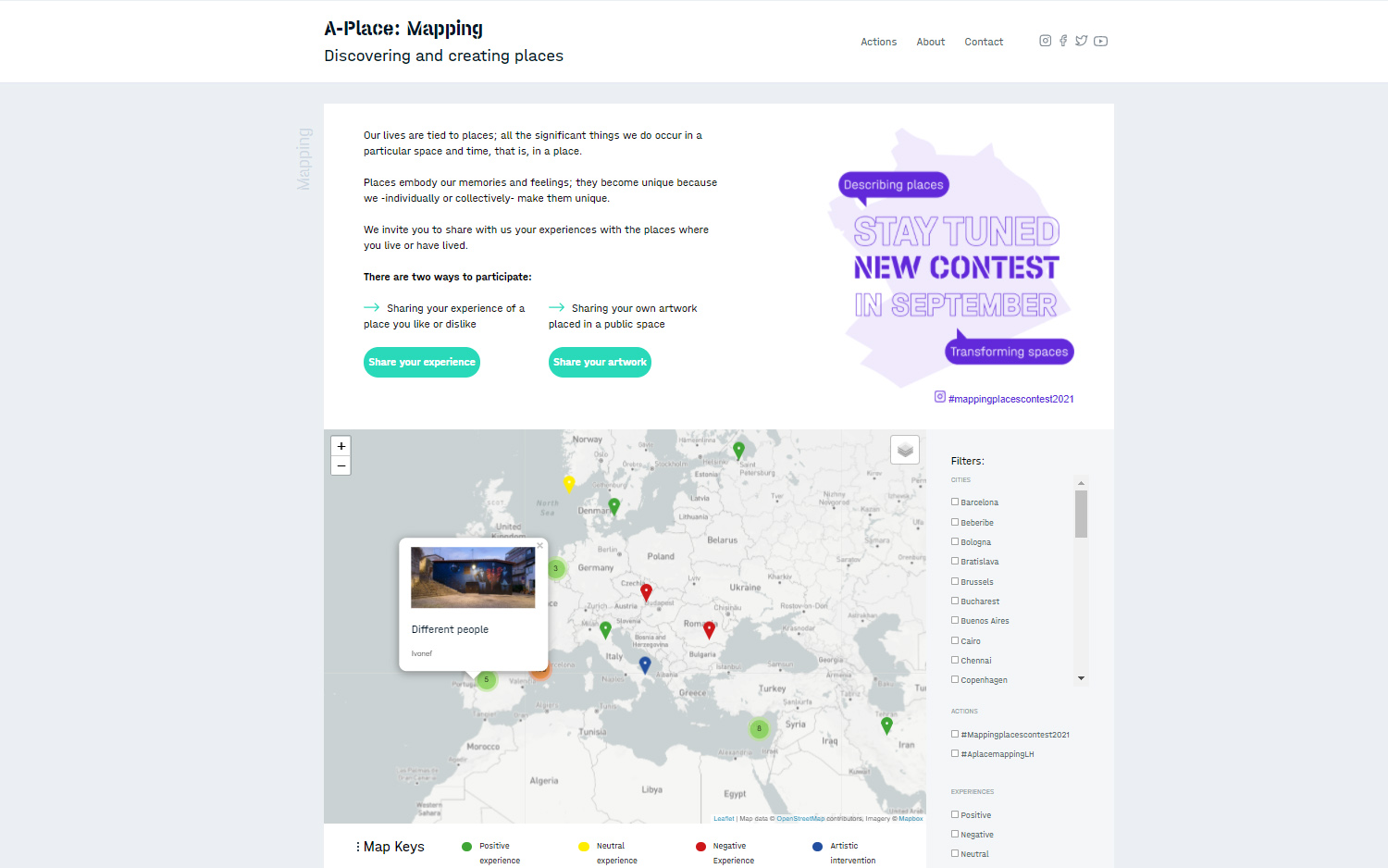 Scholars, filmmakers, artists, art curators and activists, as well as a diversity of audiences, online and offline, participated in the A-Place section of the three partner festivals – Loop Barcelona, Pame Kaimakli, Urban Visions. These festivals aim to develop knowledge-sharing between people and places through the production of films, and to promote intercultural dialogues as part of public space research and practice. In this context, films are the means to promote artistic productions and foster debate about public space, exploring urban humanities through an interdisciplinary approach and supporting experimental bottom-up practices in the public realm with local communities (video productions made by artists and residents in “A Delicious Place"