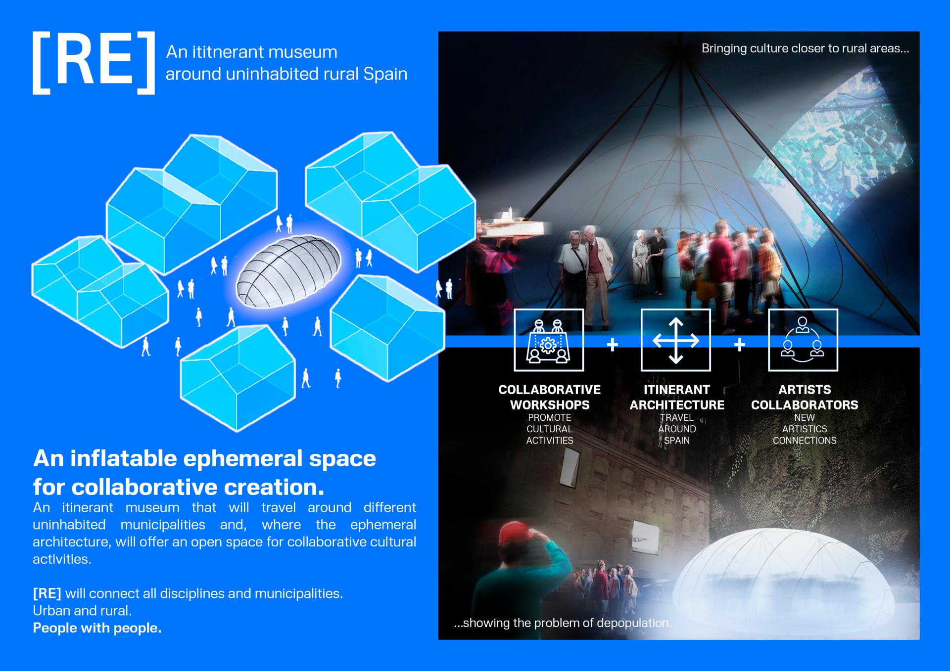 An itinerant museum that will travel around different uninhabited municipalities and, where the ephemeral architecture, will offer an open space for collaborative cultural activities.