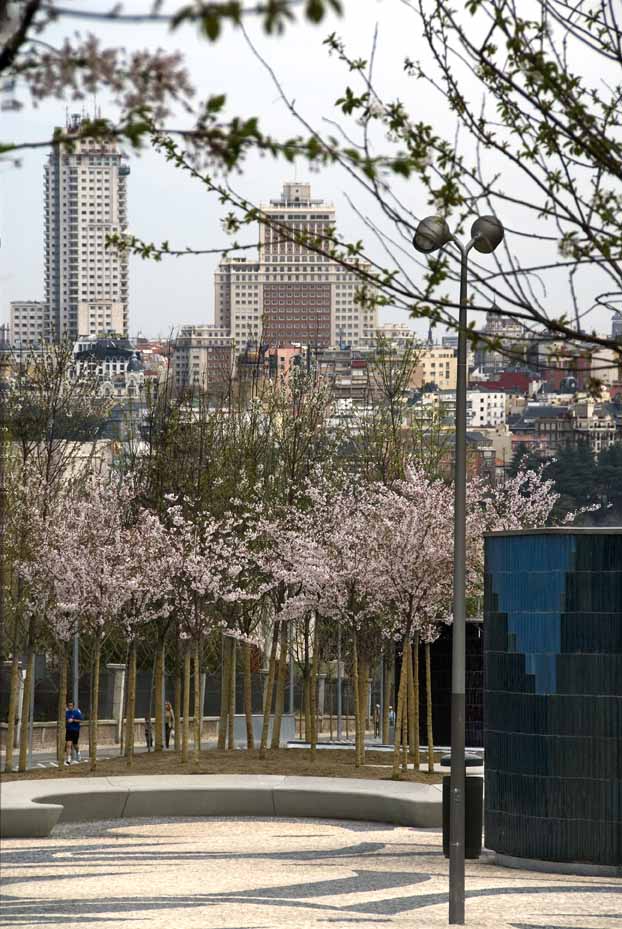 In terms of urban-nature evolution Madrid Río is a multipurpose project, a mixed mode intervention on the territory, that overlays on the same place different uses: it includes an immense green infrastructure of a considerable territorial dimension; it incorporates social aspects as it offers large public space for the citizens; it reduces the heat island effect thanks to its vegetation and permeability; it controls the vehicle emission of polluting gases which are filtered in the tunnels and then released into the atmosphere; it also improves the quality of the water of the river though filtration and retention of rainwater.