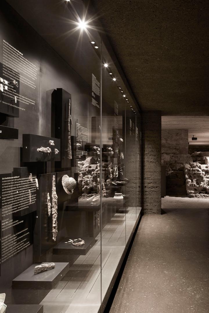 On the other side of the project is an underground exhibition site. A distinct step out of the monolithic volume puts one into a very real place showing the remains of the old churches underneath the current one. The history of the place becomes very concrete and exists right in front of the eyes.