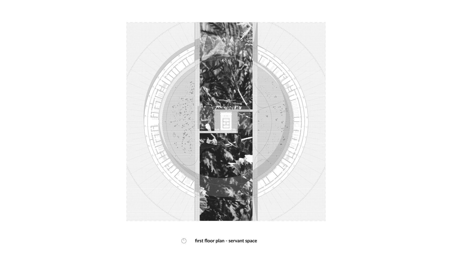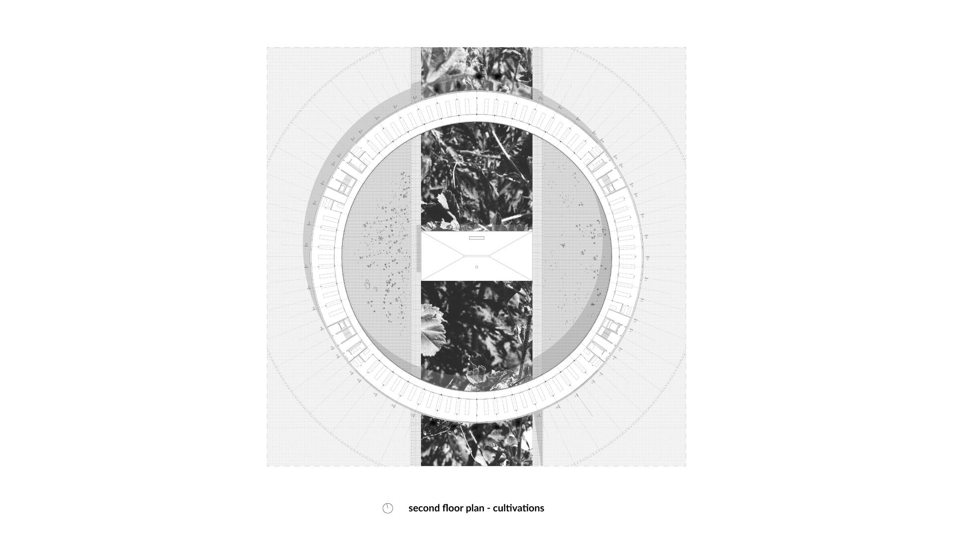 The ring of the building is placed on the strip of the meadow. The proposed form defines a circle, concentrating the space towards its center. It constitutes a boundary, symbolically separating the site from the rest of the estate. According to folk beliefs, places where, nature meets human settlements, abound in plants with extraordinary powers. Most of the spaces in a cultivation building provide a view into their interiors, allowing for observation of their functioning and the process of collecting herbs. It builds awareness of the origin of the product and connects with it. The decision to introduce plants to a closed environment indoors was supported by analyzing the current herbal market in Poland. The dichotomy created between the growth space and the plants' natural habitat reflects the declining condition of the environment. This contrast is emphasized by the used materials, dividing the object into the ground floor and the laboratory cultivations level.