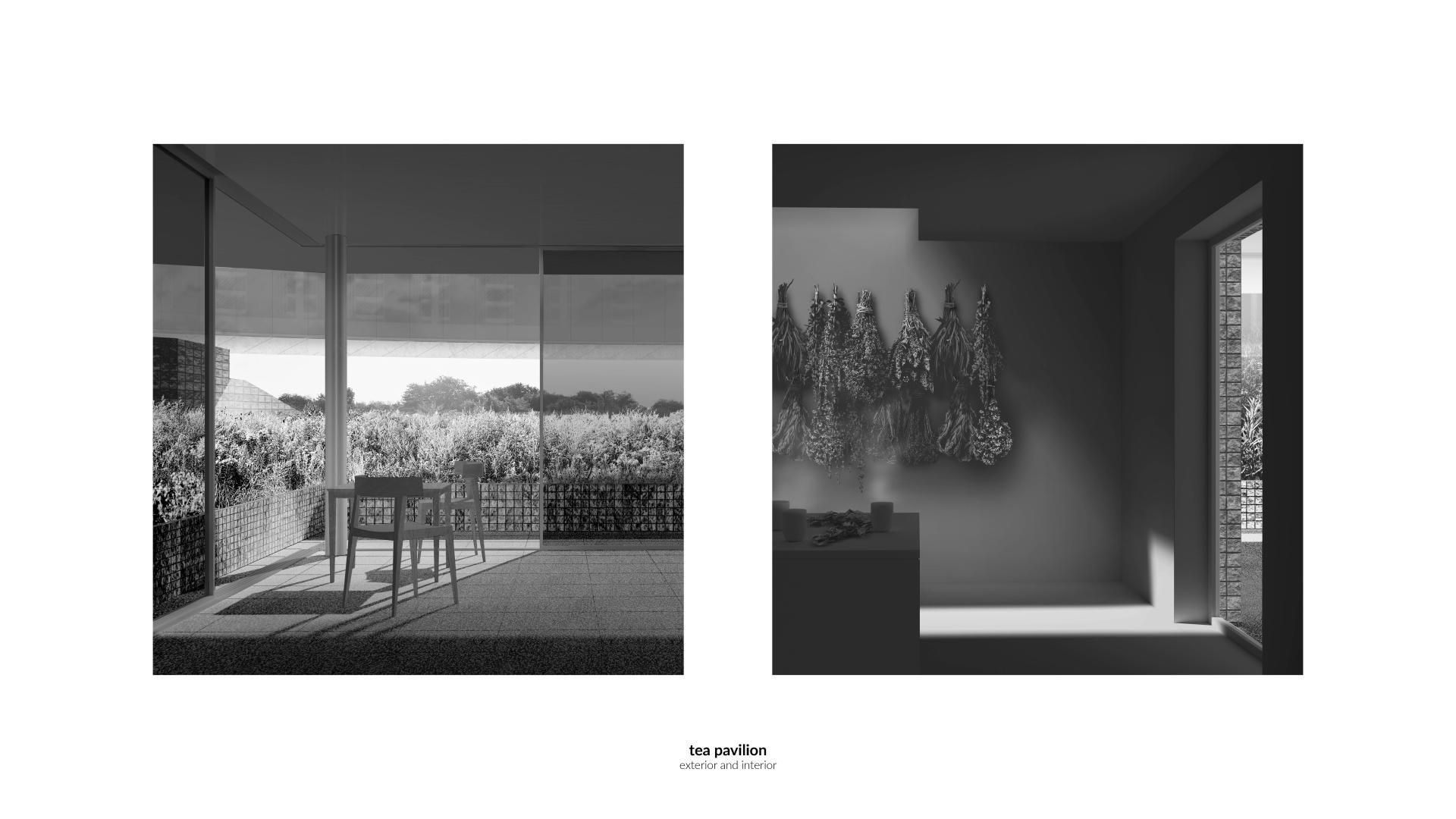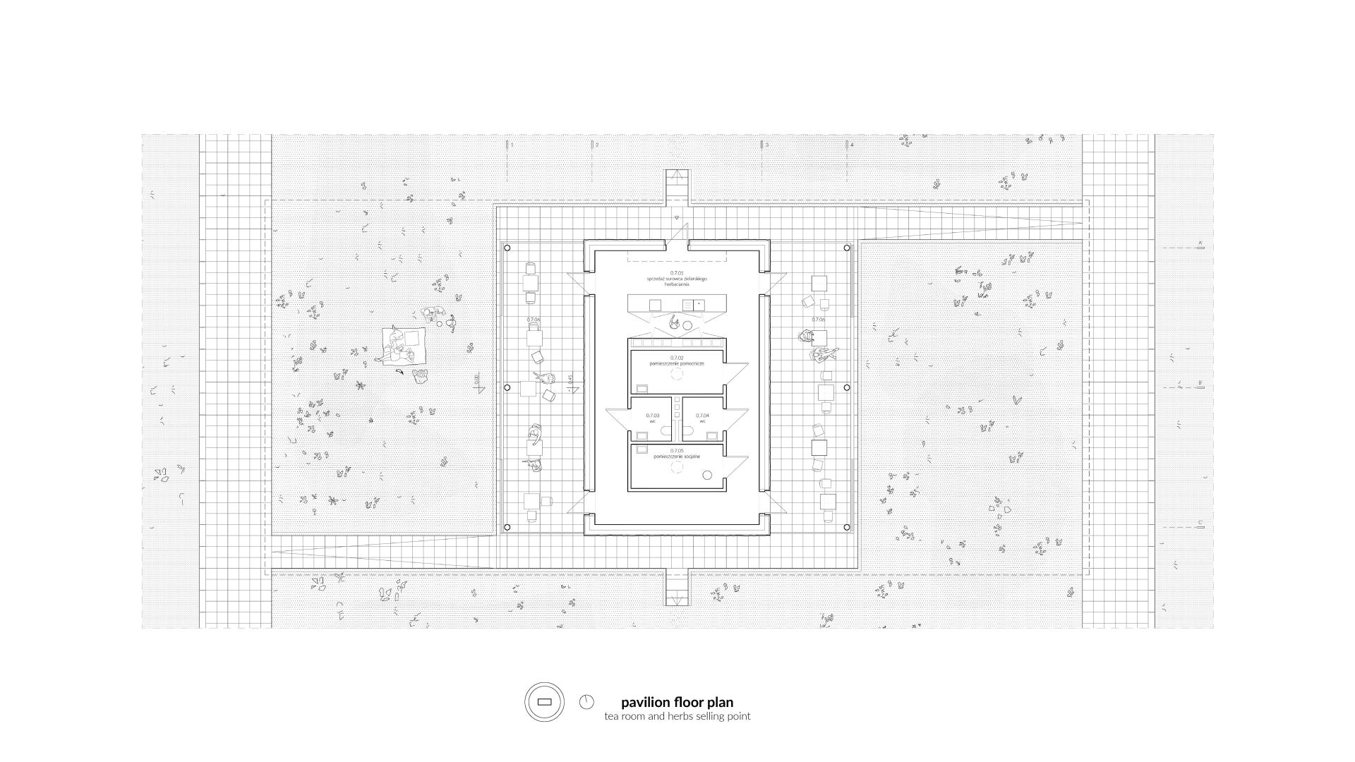 The tea pavilion where raw herbs can be bought or herbal infusions drunk complements the experience of the meadow. It encourages plants' active use, which leads to an increase in its acceptance among its users.