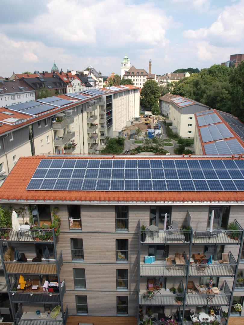 Aim of the project was an energetic refurbishment of the four existing buildings to a primary energy requirement for heating and hot water that is at least 50% below the allowable value of a new building. Additional residual heat should come from renewable energies or be compensated for, thereby guaranteeing a climate-neutral energy supply of the quarter.