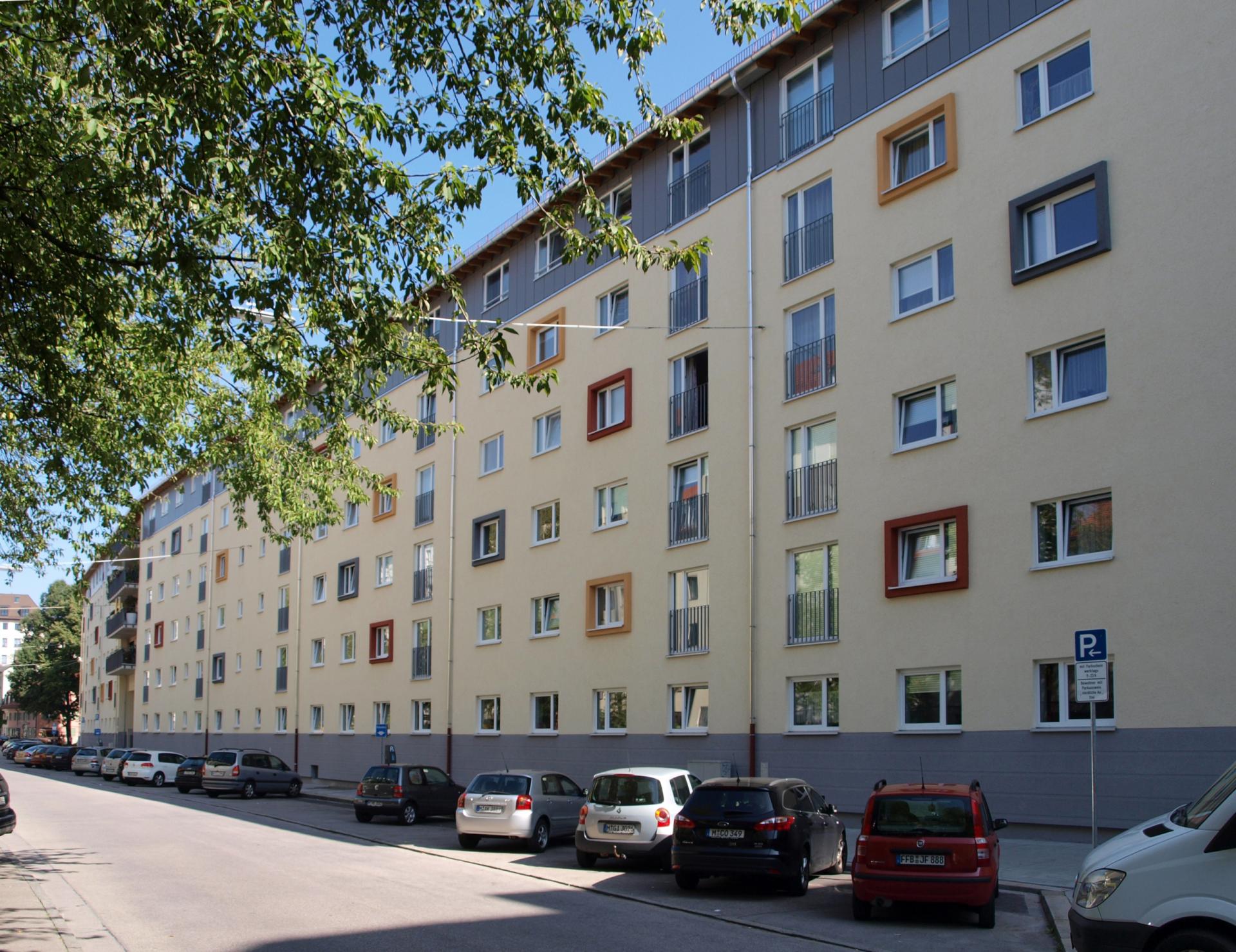 The residential complex „Lilienhof“ in the district Haidhausen-Au in Munich was originally built in 1955 with four three- or five-storey buildings, with basements and not-converted attics. The existing 149 apartments with a total living space of approx. 6,513 m2 had a size between 40 m2 and 65 m2. They were outdated, small, dark apartments mostly heated with single ovens fired with coal or gas. Some apartments had electric heaters or were connected to a gas floor heating. The heating of water was decentralized and mainly provided by gas operated water heaters in each apartment. Between 2011 and 2014 GWG München completed a renovation and densification-project in this quarter.