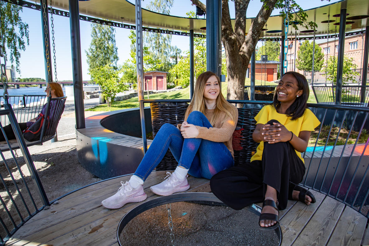 Freezone (In Swedish “Frizon”) is one of Sweden's first public outdoor environment that focuses on young girls taking place in the public space. Through dialogues between young girls in Umeå, the city administration, architects, designers and builders, the girl’s ideas and design have resulted in an equal and including meeting place “without expectations”, for everyone to enjoy for socializing and hanging out.
