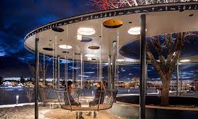 The procurement for the builder and architect was based on the results from all the discussions and dialogues held with the young girls, in order to clarify the basic requirements for the design of Freezone. The place (Freezone) was also to be designed with high artistic quality and thus the requirement in the procurement was also that an artist and a lighting designer should participate in the working group. The role of the design would be to contribute to creating a unity in the new park landscape along the river, Umeå's new front, and provide social and aesthetic added value in the city. Freezone would be designed with security in mind, e.g. visibility, lighting, proximity to other areas with other people etc. Tyréns AB was selected, in collaboration with the artist Kerstin Bergendal, to construct and design the meeting place based on the dialogue work and the vision Freezone - an equal place.