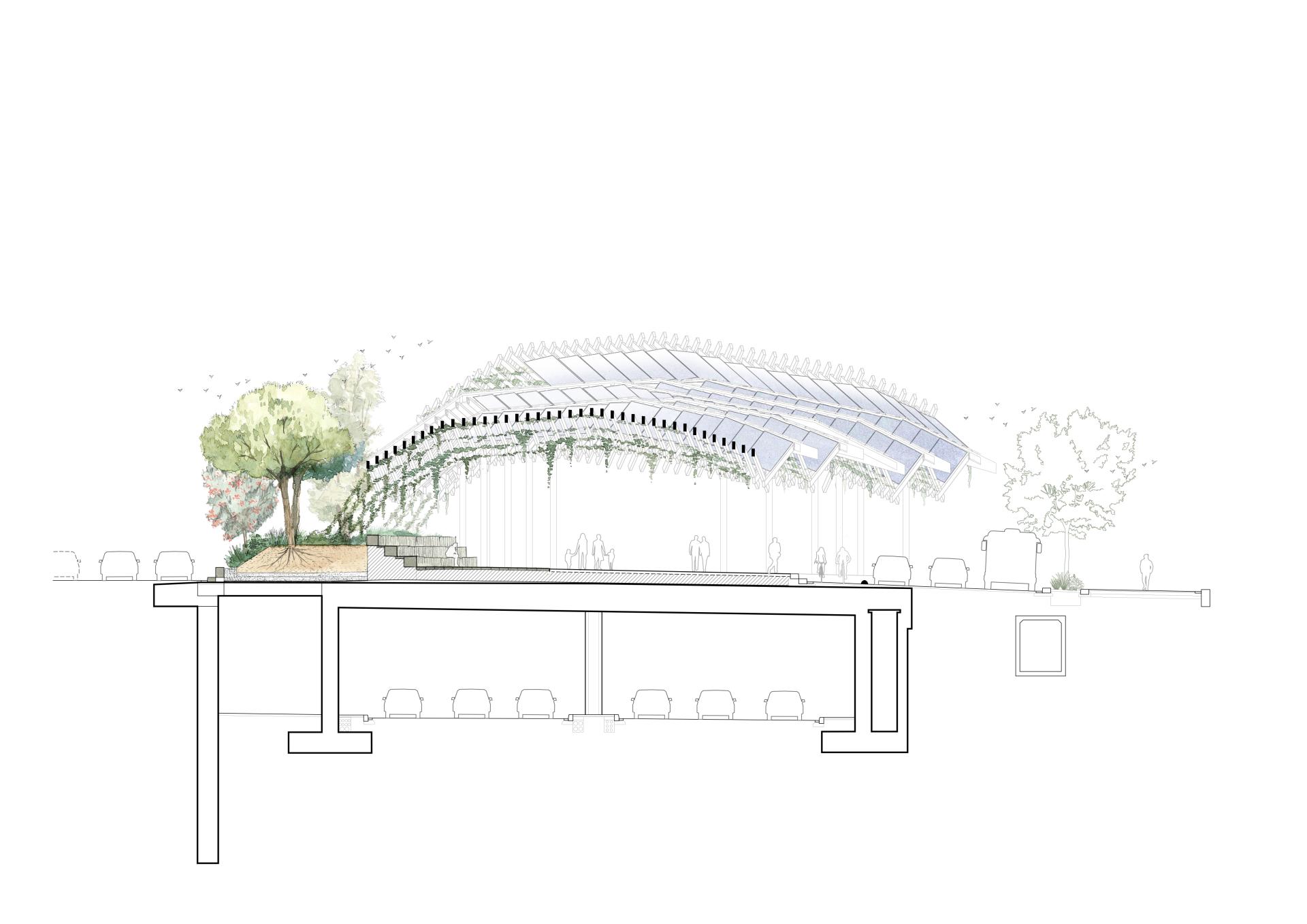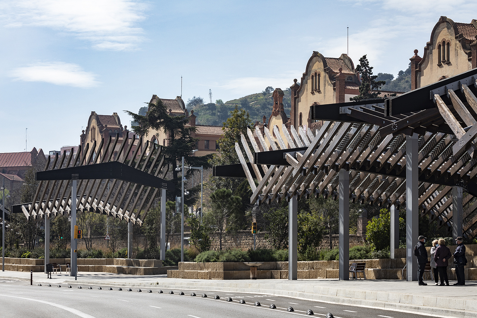 A new public space is designed in line with the climate emergency despite the technical conditions of the road infrastructure.The new coverage of the Ronda and its urbanization is a clear example of urban recycling,where the demands and demands of the city change,and with it its spaces.It is an innovative example because it maximizes green and shading areas in the new spaces gained,it brings Collserola closer to the city to improve urban and indigenous biodiversity,it uses natural materials to make a friendly and sustainable public space and energetically it compensates the construction by converting the city in a productive landscape.