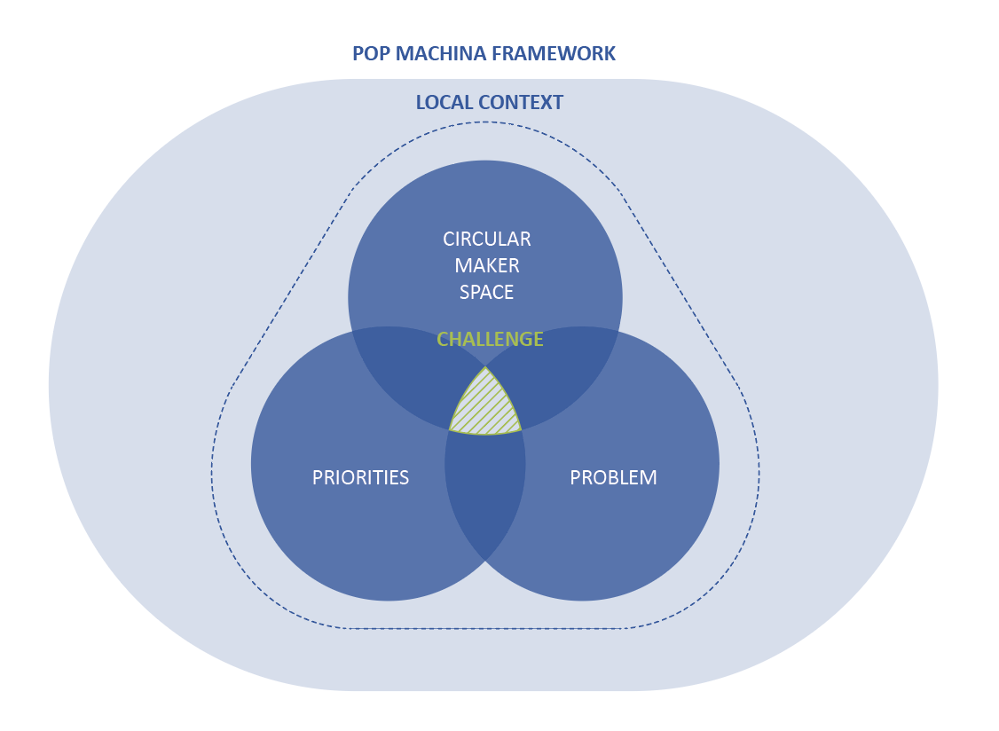 The Circular Maker Academy was designed and implemented by Fab Lab Barcelona in the framework of Pop-Machina in the year 2020. Pop-Machina is deployed in seven pilot cities: Santander (ES), Istanbul (TR), Venlo (NL), Thessaloniki (GR), Leuven (BE), Kaunas (LT) and Piraeus (GR) with each city selected for their diverse characteristics. The pilots aim to demonstrate the potential of circular innovation and support the implementation of the EU Circular Economy Action Plan at a local level. The approach identifies underused urban areas and buildings, waste materials, underrepresented social groups, skill development as well as collaborative tools and technologies to engage, promote and support long-term circular practices as part of the city’s social fabric. The project aims to establish and support self-governing maker communities in each pilot city through the implementation of co-creation workshops, ideation sessions and the setup of Circular Makerspaces.