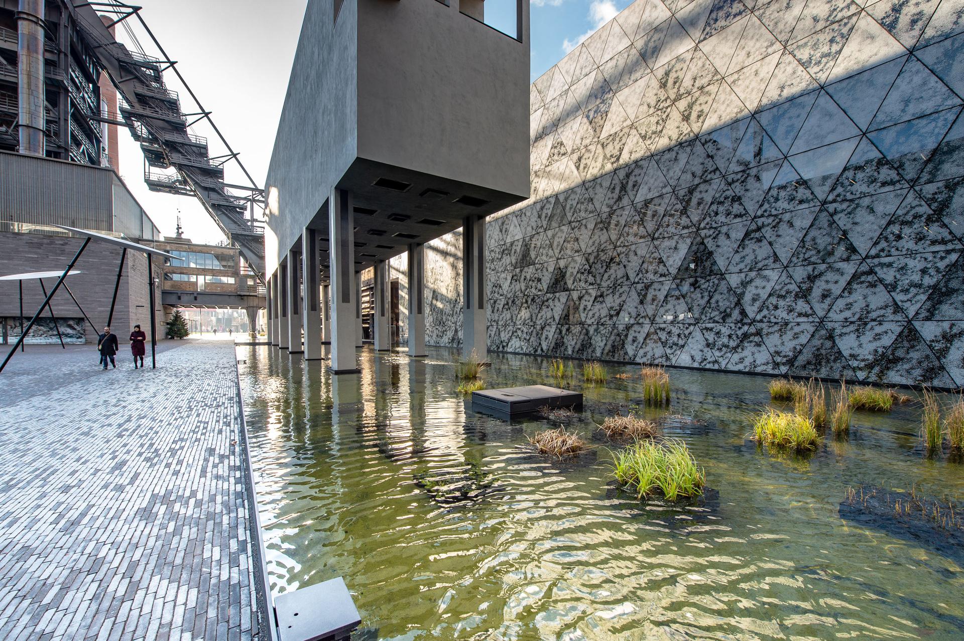 The architects preserved and integrated the existing steel construction of the old industrial hall into a new design, creating a contrast between the part of the remaining building and futuristic, three-dimensional façade. The objective was to preserve the industrial heritage as a culturally and environmentally sustainable option in broader urban transformation.
