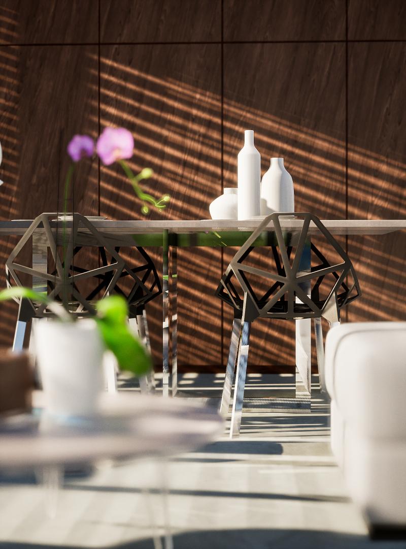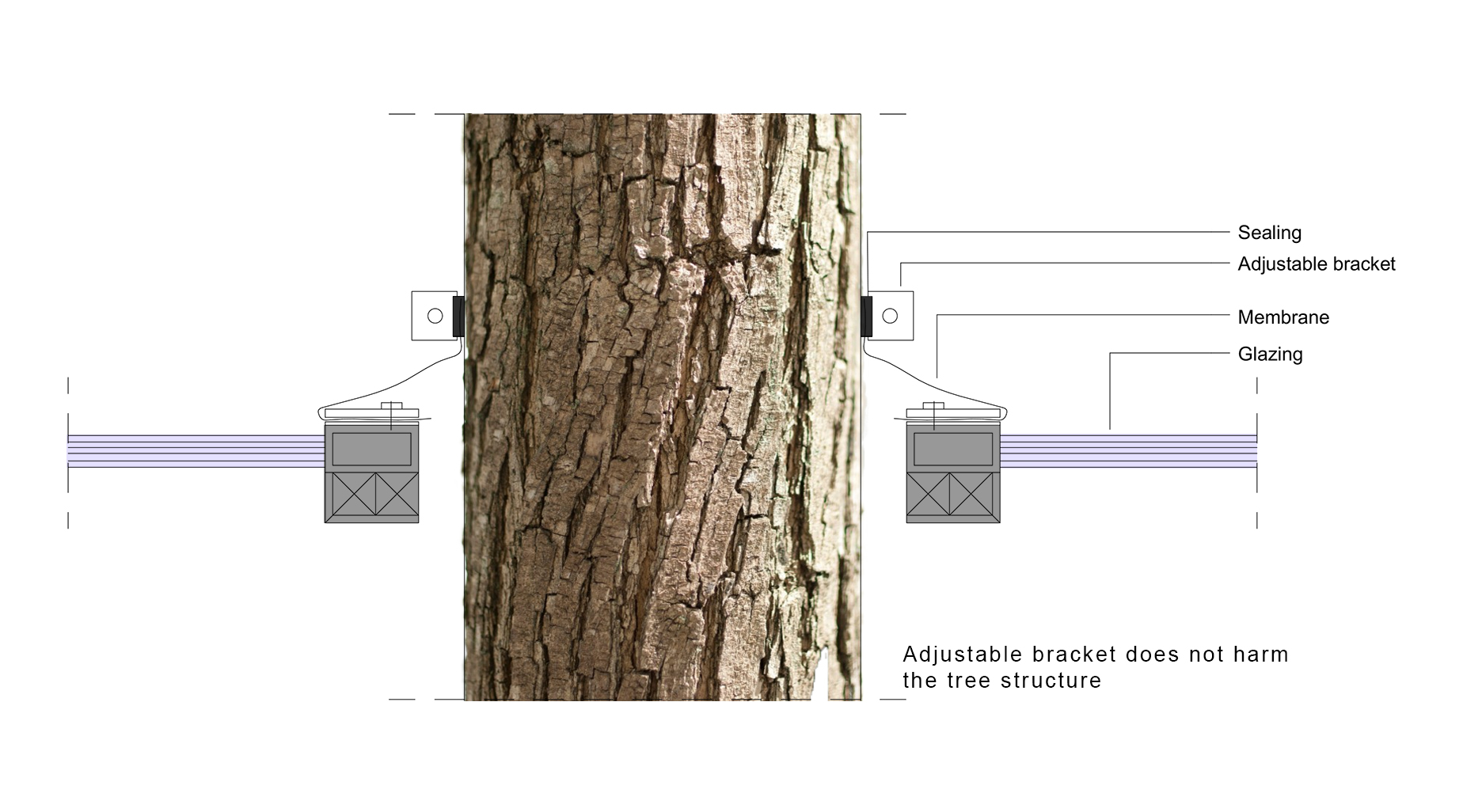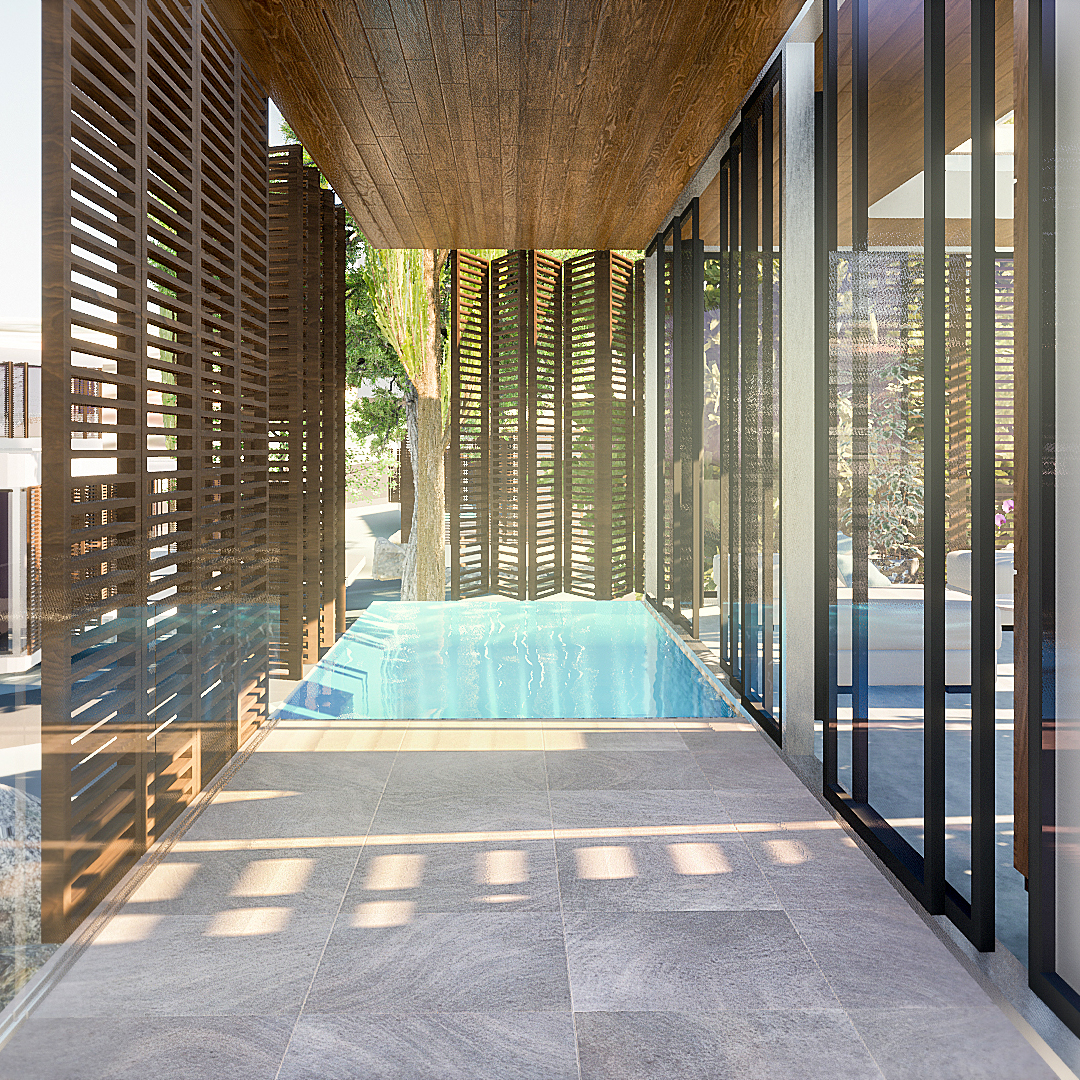 Biodiversity: Each villa is built around an existing tree which becomes a strong part of the interior space. Each saved tree benefits the flora as well as the fauna. For example, birds can nest there and people are closer to them which is a natural promotion of biodiversity.