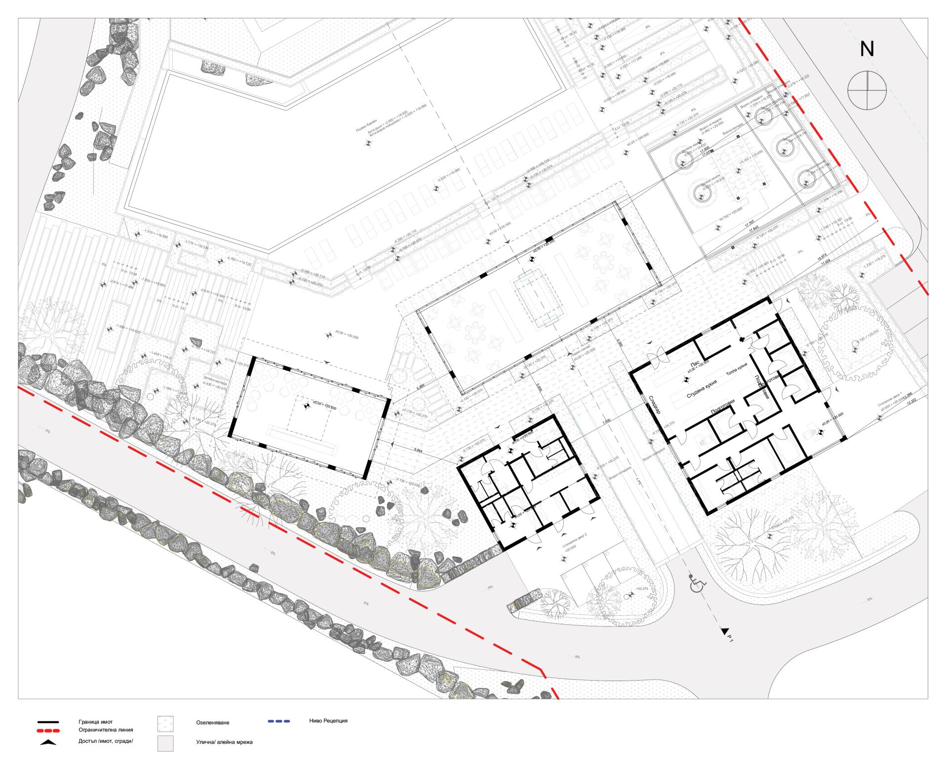 The masterplan is inspired from the Old Town of Sozopol. It interprets the picturesque architectural ensembles of the old Renaissance houses from the period XVIII - XIX c. (Black Sea school of architecture), the narrow cobbled streets and their intersections, and the so-called “rimni” (narrow spaces between houses).