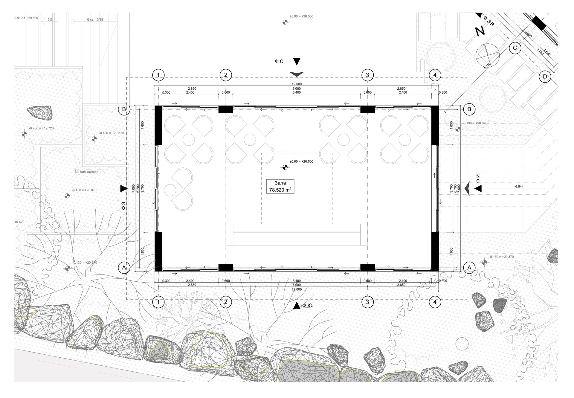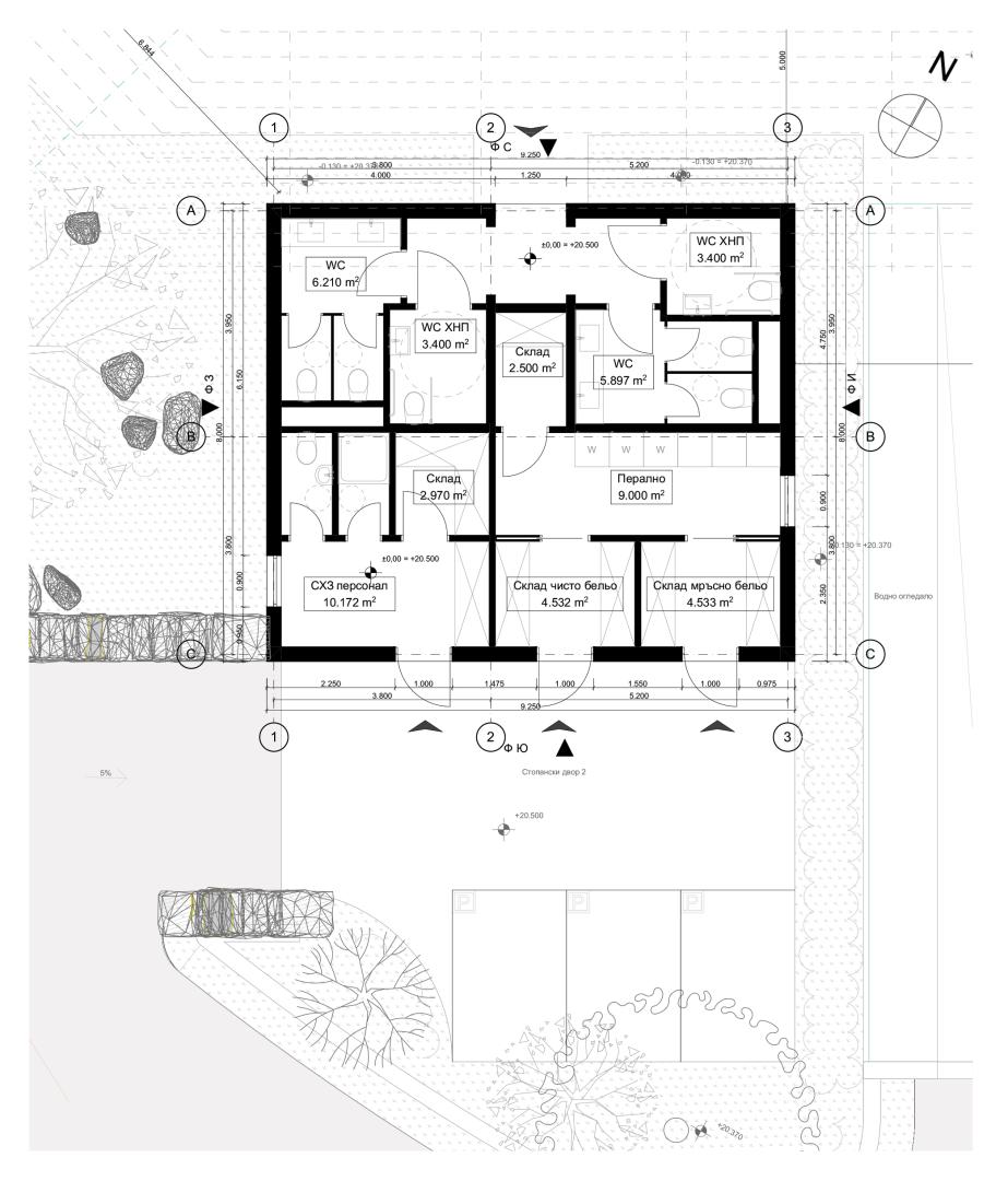 Floorplan principles: The terrain has a slope to the north. In the same direction is the view to the Black Sea. In order to achieve the two objectives "view (to the north) + natural sun light (from the south)" open plan strategy was choosen. The external walls are the glazing. This allows view to every direction and contributes with the health benefits of sunlight.