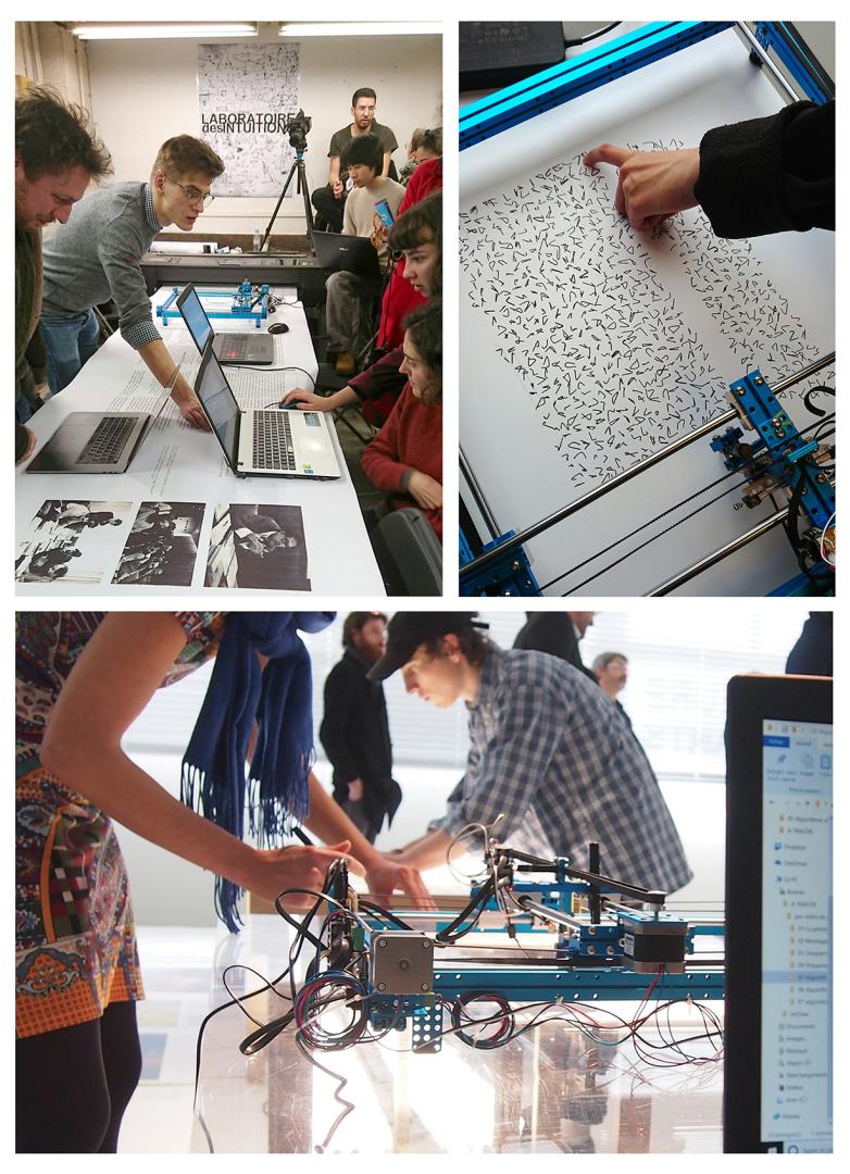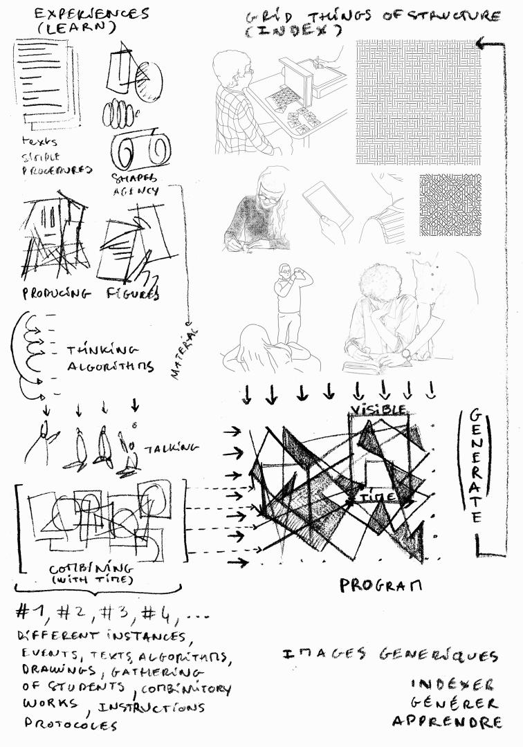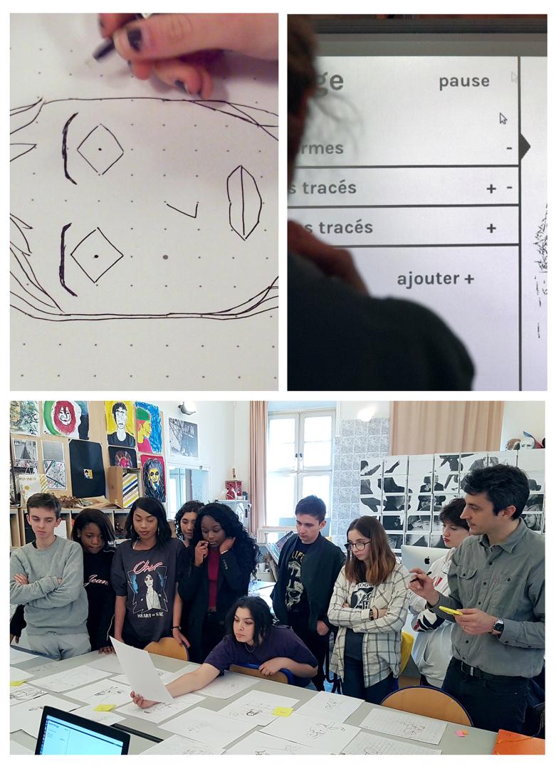 We have seen that the Generative Workshop leads to questions on the relationship between manual and intellectual gesture, but also between thinking and algorithms. We believe that today the wakening to the importance of such questions is necessary and that it goes beyond the framework of artistic education. The heteromation analyzed by Hamid Ekbia and Bonnie Nardi in 2017[1], which divides the work between humans and machines by means of algorithms, poses an economic, social and political problem. Just as artificial intelligence can be perceived as an “epistemological revolution”[2], the importance of illuminating relationships between human cognition and machine calculation must be considered. Focusing on the artistic creation to reflect the social activity of an era also allows a critical experience in a complex maze of individuals and algorithms.