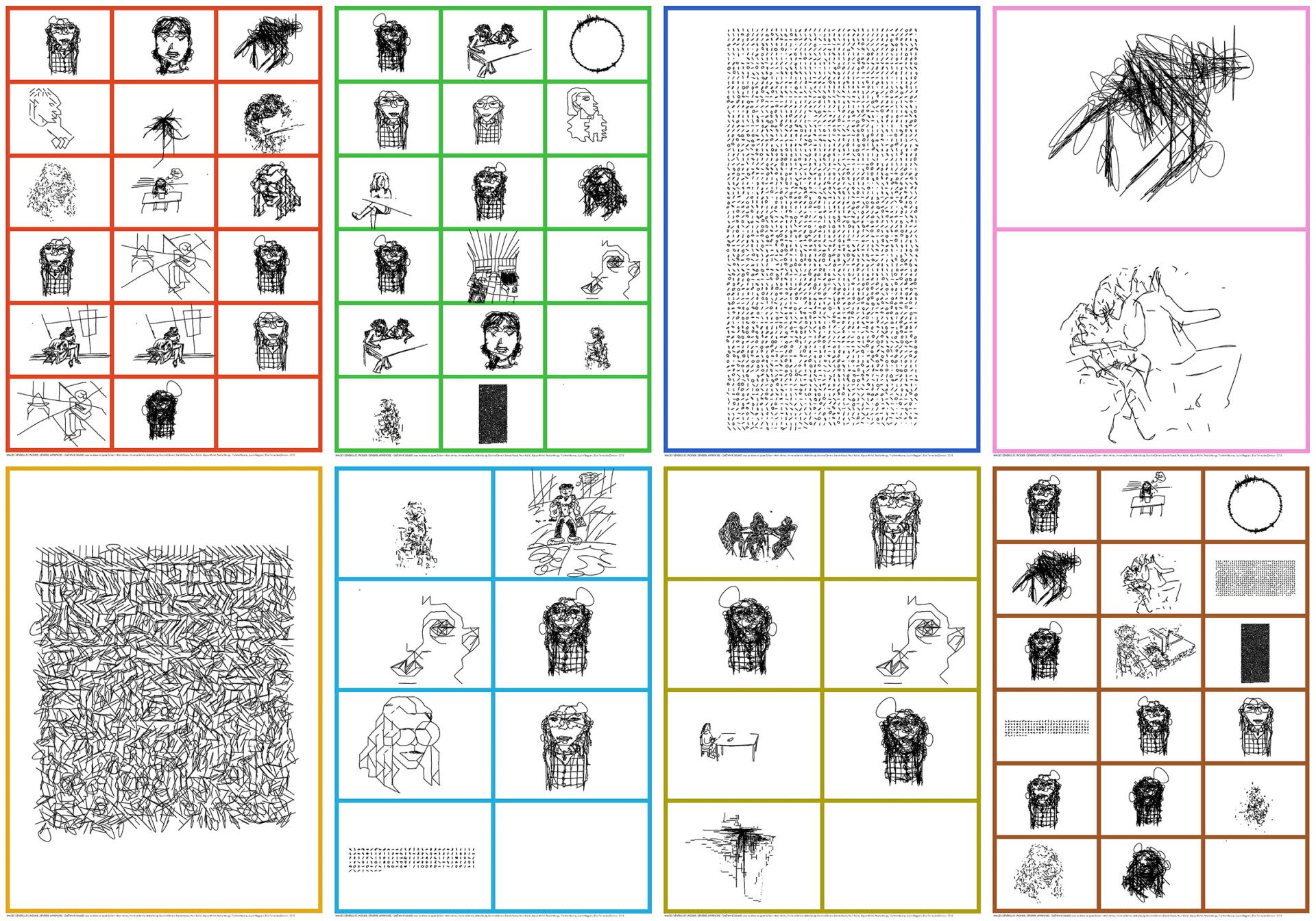 1. Index: an index of visual elements drawn by hand or generated by algorithmic procedures – graphic shapes, hand drawings, or transformations of these drawings. The index can be related to the notion of repertoire found in generative aesthetics (Max Bense, 1965; Frieder Nake, 2005).