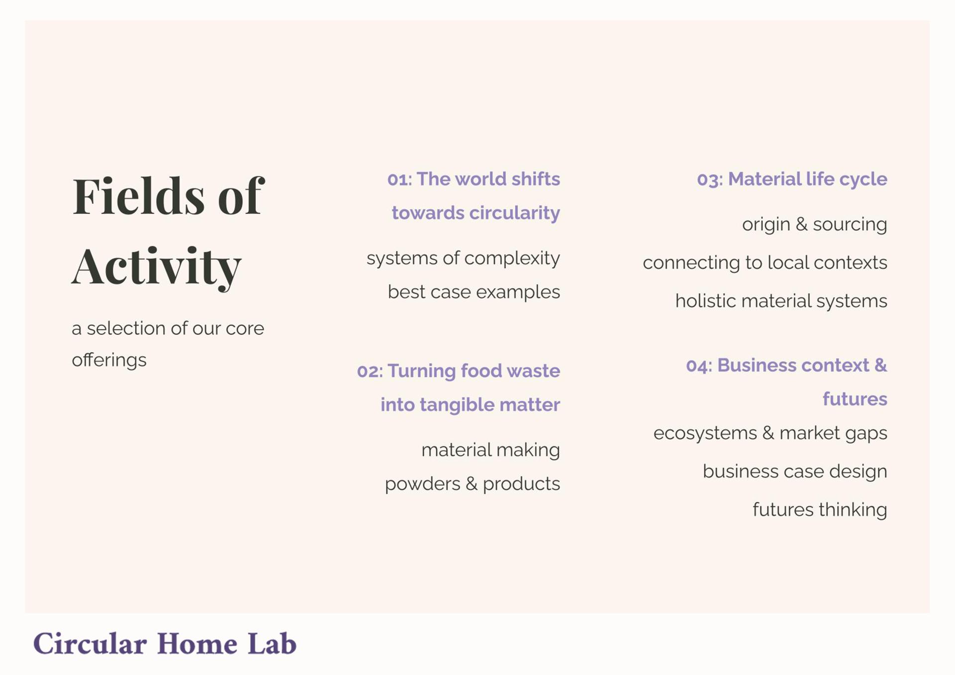 What makes Circular Home Lab different and sparks the interest of participants, clients and collaborators world wide - is the unique background to bring business innovation and biodesign together. This enables us to share the skills and mindsets required to understand our complex world better. In simple words, not only seeing ‘what sustainable research and innovations exist’ within science and arts but also ‘how we can start to implement these new thoughts and processes’ from personal and business perspectives. From local to global outlook.