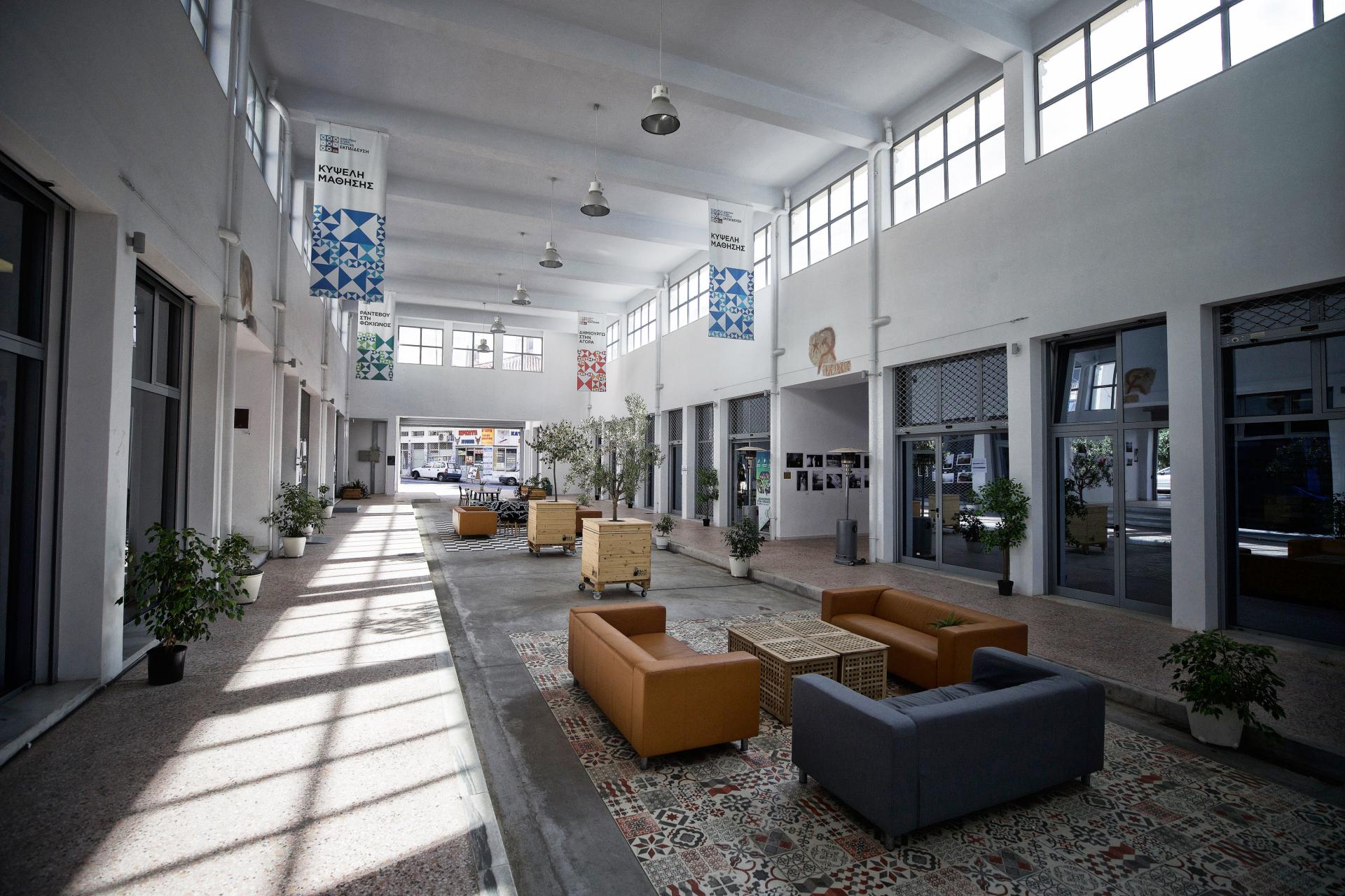 The Municipal market of Kypseli used to be a place where neighbors were socialising as well as buying goods from local food producers These are two elements we wanted to maintain in this new iteration of the space. We kept the feeling of everyday shopping with the stores and the pop up markets we are organizing, bringing this feeling of a commercial center for customers to cover their everyday needs. Moreover, on an everyday basis there are sofas, tables and chairs giving the feeling of an open, urban living room, which is inviting for everyone, offering a meeting point for all the citizens, migrant communities and entrepreneurial forces of Athens.