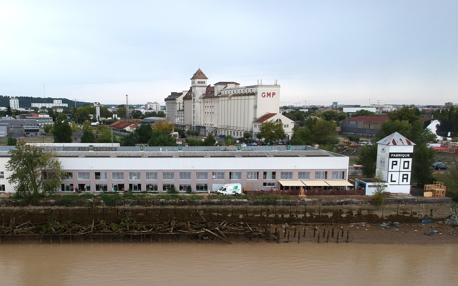 Gardens on the quays along the Left Bank of the Garonne, now being extended along the Right, the Chaban-Delmas bridge with walkways as easily accessible as on the traditional “Pont de pierre”, have opened up new paths along the river. The old warehouse, now transformed into a cultural center – La Fabrique Pola - is on the new pedestrian route and its four large concrete porticos with folding glass doors, invitingly open up its spaces to welcome the public.